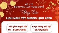 Bệnh viện Mắt Trung ương xin thông báo lịch nghỉ Tết dương lịch 2026.