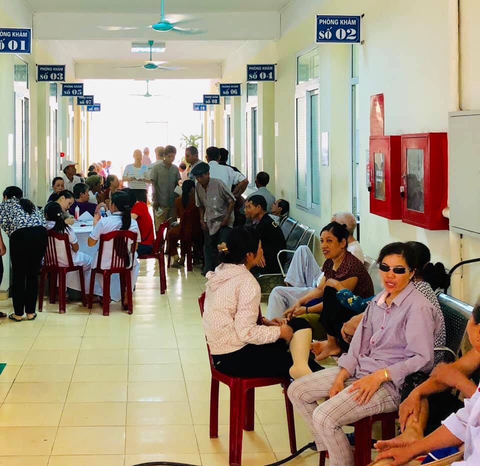 Mới 6 giờ sáng, hàng trăm người già đã có mặt tại Trung tâm Y tế huyện Nghĩa Hưng để được các y, bác sĩ Bệnh viện Mắt TW khám và mổ mắt miễn phí.