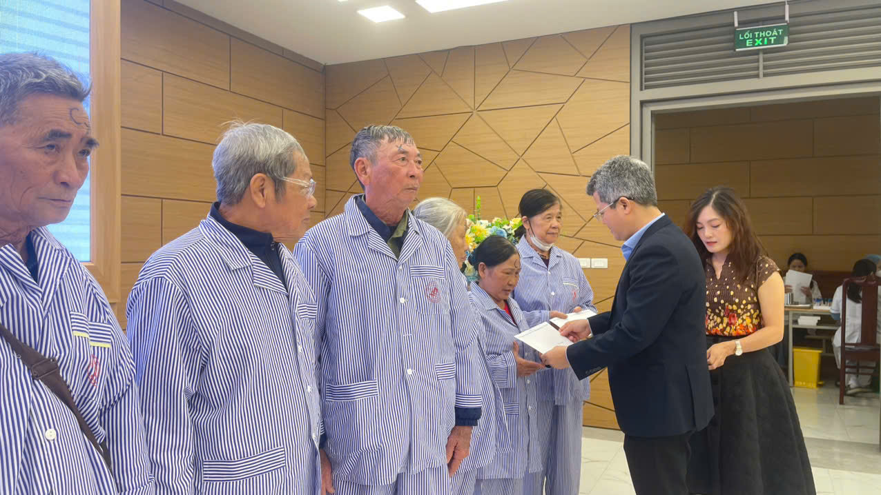 PGS. TS Phạm Ngọc Đông đã đến thăm, động viên bà con đến đăng ký khám mổ và đoàn cán bộ công tác đồng thời cùng với lãnh đạo bệnh viện Đa khoa Nam Định và Bs Nguyễn Hữu Chiến Phó chủ tịch Hội doanh nhân Nghĩa Hưng tại Hà Nội gửi tặng những xuất quà tới bà con nhân dân tới khám và phẫu thuật trong đợt này.