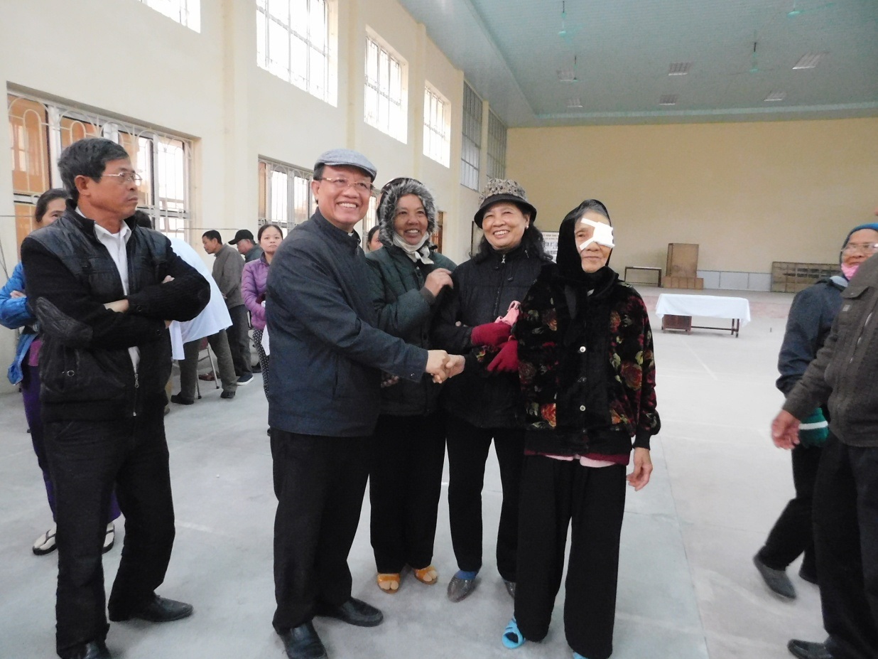Bà Trần Thị Giới 78 tuổi trú tại Xóm 3 – Gia Thịnh, Kim Sơn, Ninh Bình chia sẻ, trước khi mổ hai mắt tôi mờ, nhìn cái gì cũng không rõ, rất khó khăn trong sinh hoạt do nhìn không rõ, xòe bàn tay còn không rõ. Nay có bác sĩ về khám và phẫu thuật , ngay sau khi phẫu thuật mắt đã nhìn rõ con cháu, thấy vui lắm. Cảm ơn các bác sỹ, cảm ơn chương trình lắm, cụ bà mân mê bàn tay tôi bằng bàn tay thô ráp.