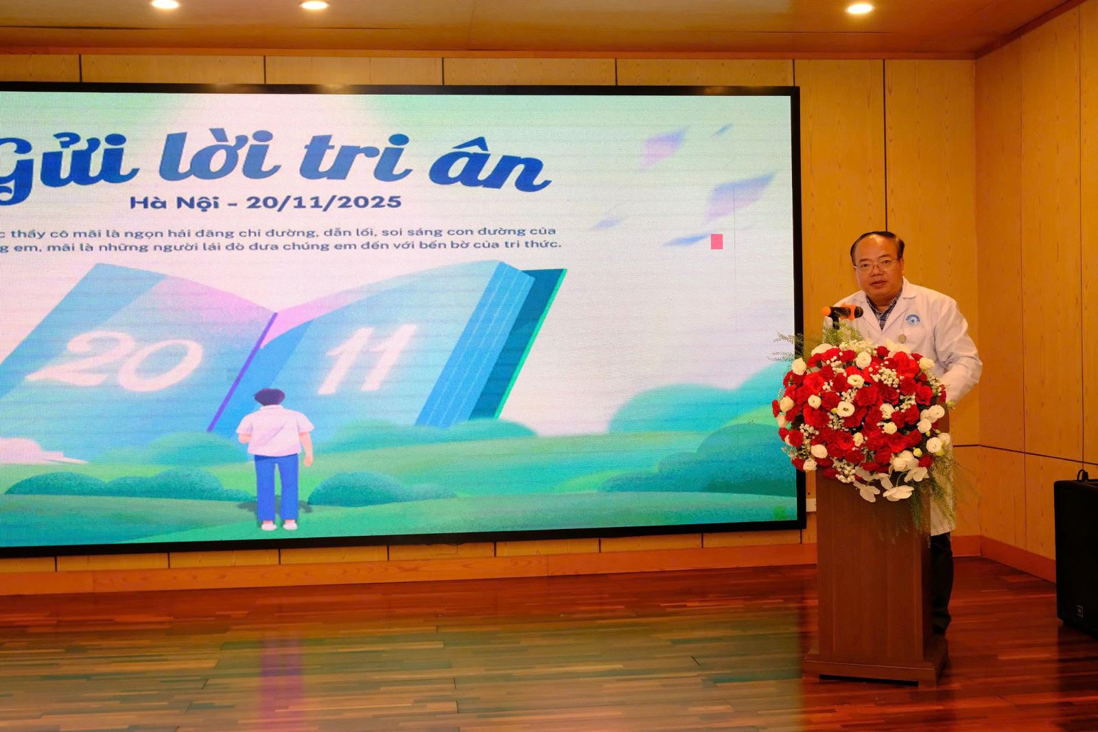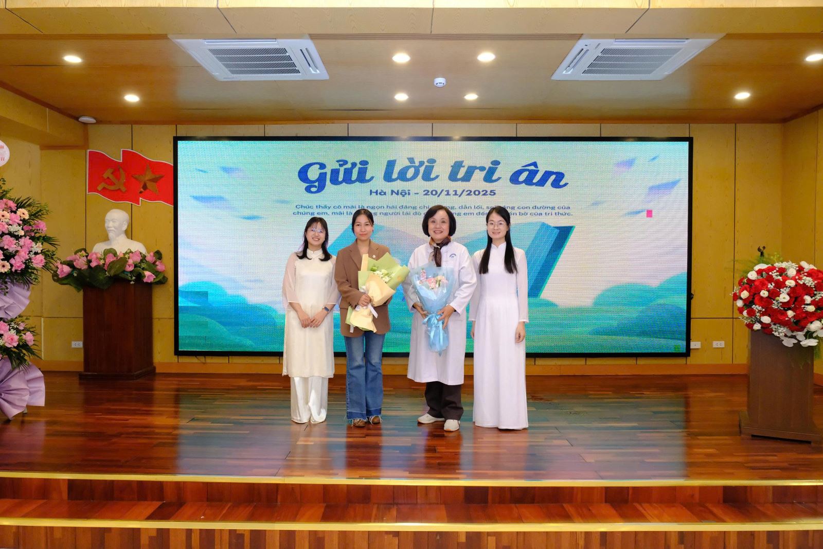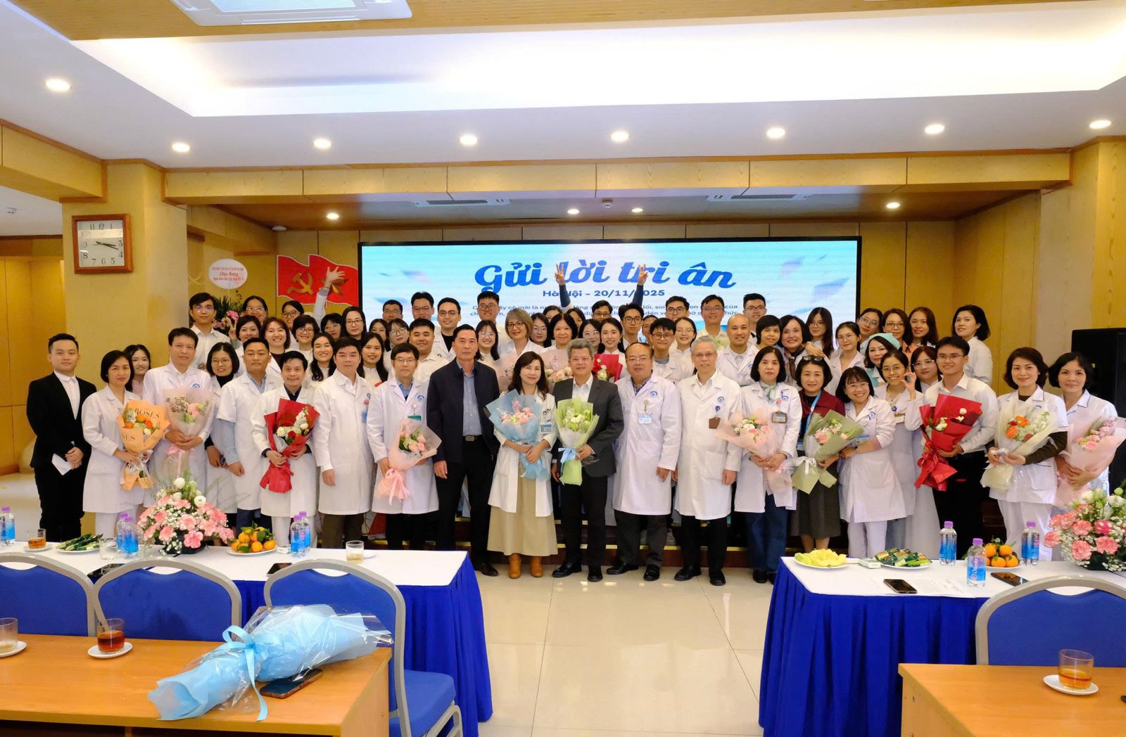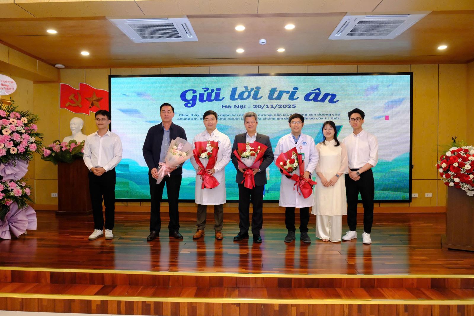 Trong không khí trang trọng và ấm áp, những lời ca tiếng hát cùng những bó hoa tươi thắm được các em gửi tới các thầy cô – là những y bác sĩ nhãn khoa trực tiếp hướng dẫn, kèm cặp sinh viên trong quá trình học tập và thực hành lâm sàng tại bệnh viện. Đây là dịp để các em bày tỏ lòng biết ơn đối với những người thầy thầm lặng, tận tụy trong sự nghiệp đào tạo nguồn nhân lực y khoa chất lượng cao.