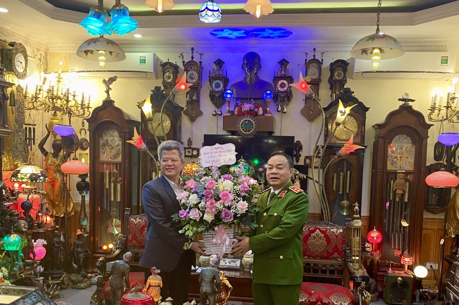 Trước đó, nhân dịp 20/11, PGS.TS Phạm Ngọc Đông, Giám đốc Bệnh viện Mắt Trung ương cùng lãnh đạo Bệnh viện đã đến tặng hoa và chúc mừng các thầy cô giáo tại một số trường đại học: