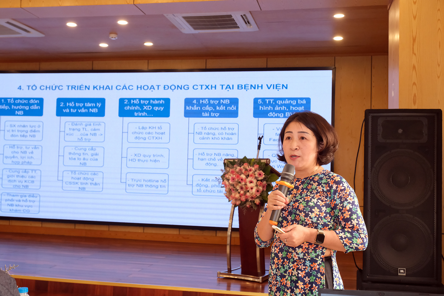 ThS Phạm Kim Đức, Phó trưởng Phòng CTXH Bệnh viện Mắt Trung ương chia sẻ về những hoạt động công tác xã hội, trợ giúp trực tiếp cho hàng trăm nghìn người bệnh trong nhiều năm qua, tăng cường các hoạt động tương tác với người bệnh qua mạng xã hội và các kênh thông tin khác, kết nối các tấm lòng hảo tâm hỗ trợ kịp thời người bệnh có hoàn cảnh khó khăn, gia đình chính sách. Trong năm 2024, hoạt đông CTXH của Bệnh viện Mắt Trung ương đã kết nối 21 tổ chức cá nhân tài trợ, hỗ trợ viện phí và các chi phí sinh hoạt với trị giá gần 500 triệu đồng, cấp 500 suất ăn miễn phí cho bệnh nhân nghèo, trao tặng 854 suất quà, tổ chức chương trình cắt tóc miễn phí cho 800 suất,…