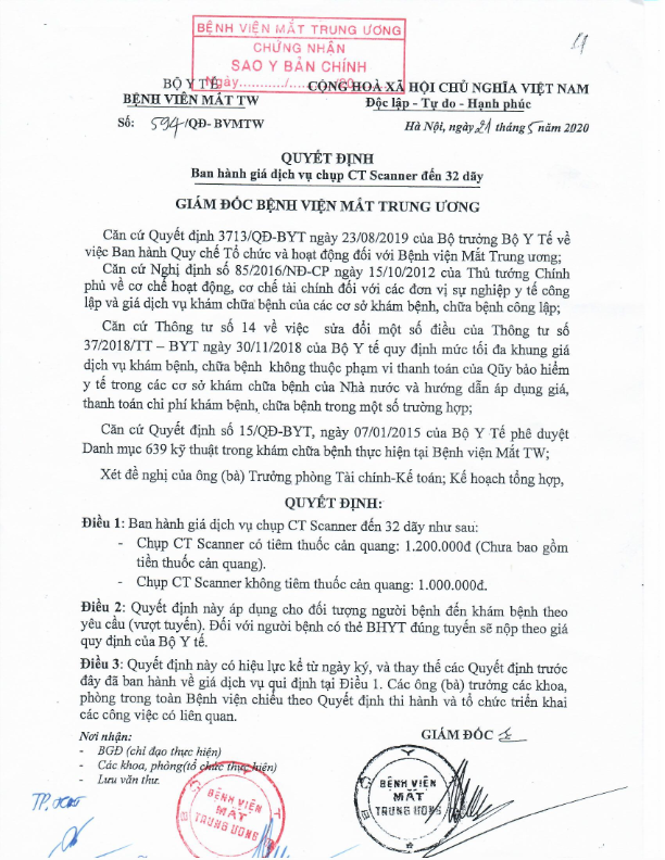 Quyết định ban hành giá dịch vụ Laser femtosecond điều trị tật khúc xạ