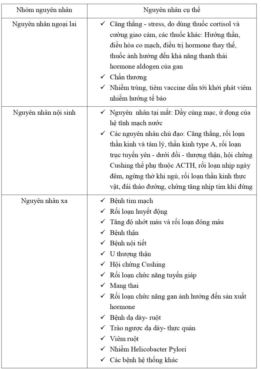 BẢNG PHÂN LOẠI CÁC NGUYÊN NHÂN CÓ THỂ DẪN ĐẾN