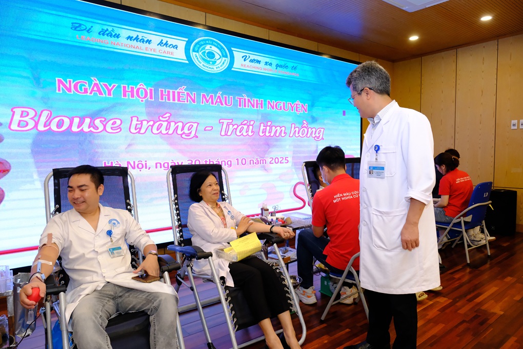 Ngày 30/10/2025, Bệnh viện Mắt Trung ương tổ chức Ngày hội hiến máu tình nguyện với thông điệp “Blouse trắng – Trái tim hồng”, thu hút hàng trăm thầy thuốc, cán bộ, viên chức, người lao động và các sinh viên, học viên đang công tác, học tập tại Bệnh viện tham gia hưởng ứng.