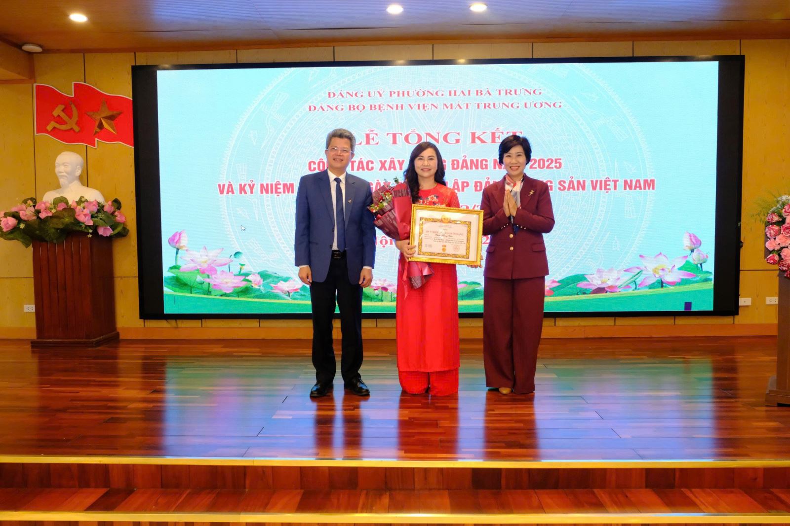Cũng tại Hội nghị, Đảng ủy Bệnh viện đã công bố và trao các quyết định khen thưởng cho 04 chi bộ và 16 đảng viên hoàn thành xuất sắc nhiệm vụ năm 2025; đồng thời trao Huy hiệu 30 năm tuổi Đảng và tặng hoa chúc mừng đồng chí BS.TS. Phạm Hồng Vân – Phó Trưởng khoa Tạo hình thẩm mỹ mắt và vùng mặt, Trưởng ban Nữ công Bệnh viện. Đón nhận Huy hiệu 30 năm tuổi Đảng cũng là 30 năm gắn bó với nghề, đồng chí bày tỏ niềm xúc động, tự hào và nguyện tiếp tục nỗ lực phấn đấu, hoàn thành tốt mọi nhiệm vụ được giao, xứng đáng với niềm tin của Đảng bộ và người bệnh.