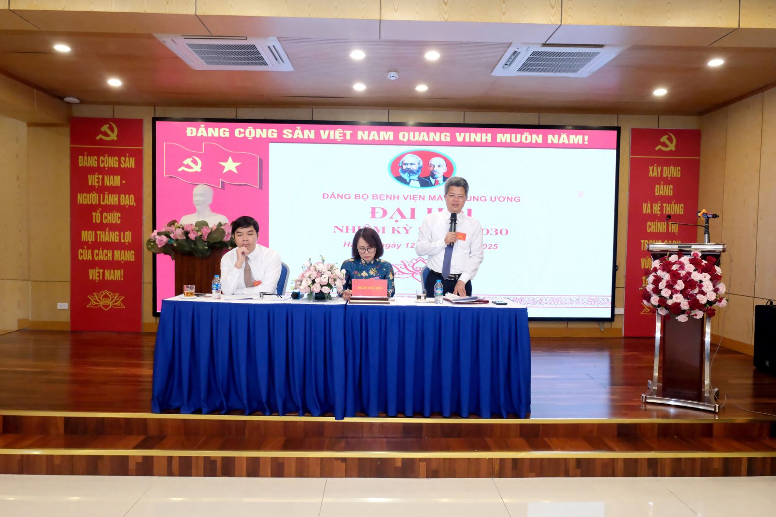 Mở đầu chương trình đồng chí Phạm Ngọc Đông –TV Đảng ủy nhiệm kỳ 2020-2025, Giám đốc Bệnh viện lên khai mạc Đại hội và trình bày Báo cáo chính trị của BCH Đảng bộ Bệnh viện Mắt TW trình Đại hội Đảng bộ Bệnh viện MTW nhiệm kỳ 2025-2030 và Báo cáo kiểm điểm của BCH.