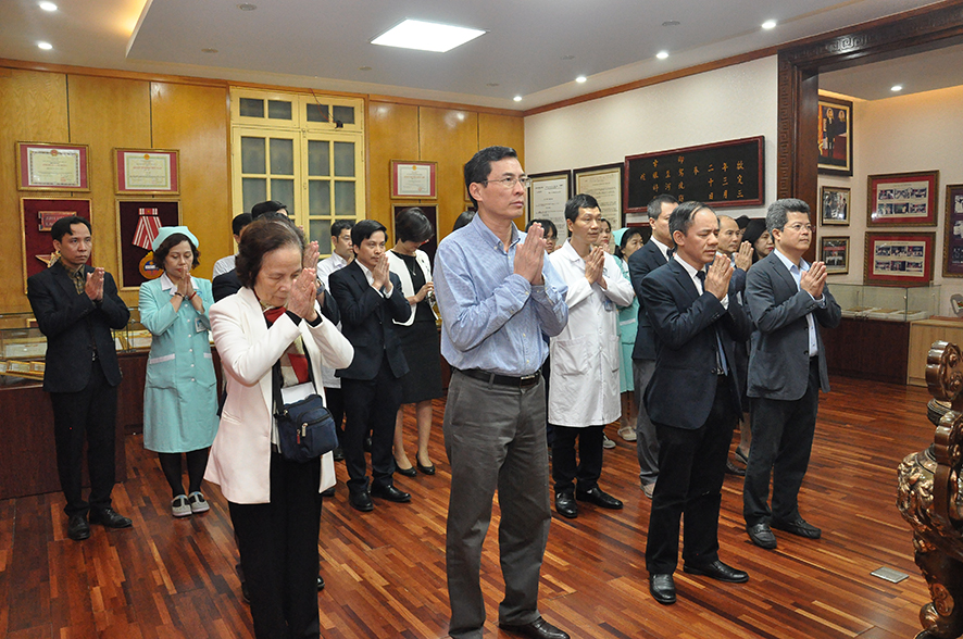 Trước khi bắt đầu buổi lễ, PGS.TS. Nguyễn Xuân Hiệp – Giám đốc bệnh viện Mắt TW và các đại biểu đã thành kính dâng hương tại Phòng truyền thống Bệnh viện, thắp hương tượng đài Giáo sư Nguyễn Xuân Nguyên và tri ân các vị lãnh đạo, các thế hệ thầy cô giáo đã mất.