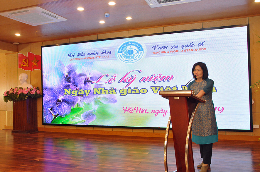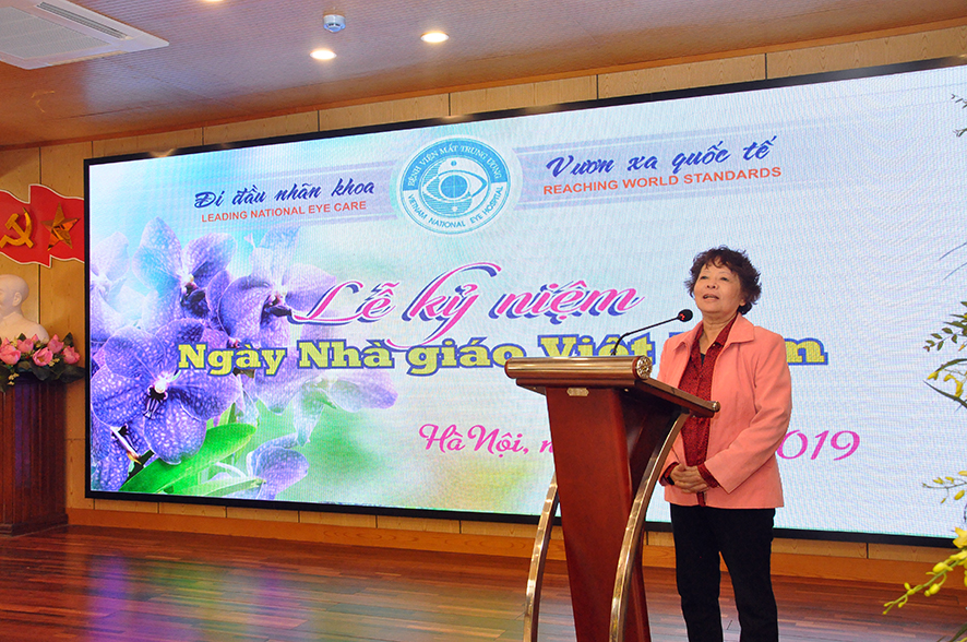 Phát biểu tại buổi lễ, PGS.TS. Nguyễn Xuân Hiệp – Giám đốc bệnh viện Mắt TW ôn lại truyền thống, ý nghĩa ngày Nhà giáo Việt Nam cũng như gửi lời chúc đến tất cả các thầy cô giáo, cán bộ và nhân viên của bệnh viện và các cơ sở đào tạo nhãn khoa, những người đã và đang vượt qua nhiều khó khăn góp phần xây dựng bệnh viện ngày càng phát triển và đóng góp cho sự nghiệp đào tạo cán bộ phòng chống mù lòa cả nước. PGS.TS. Nguyễn Xuân Hiệp cho biết Bệnh viện luôn xác định đào tạo là một trong những nhiệm vụ quan trọng hàng đầu. Lãnh đạo bệnh viện luôn dành sự quan tâm sâu sắc đến công tác đào tạo, đầu tư cơ sở vật chất, mở rộng các nội dung đào tạo, cải tiến nâng cao chất lượng chương trình đào tạo... Bên cạnh đó bệnh viện không ngừng mở rộng quan hệ hợp tác, cả trong nước và quốc tế. Hiện nay bệnh viện có quan hệ hợp tác đào tạo với nhiều nước như Nhật Bản, Hàn Quốc, Singapore, Thái Lan… Bệnh viện Mắt TW không chỉ là cơ sở đào tạo các học viên trong nước, mà còn có rất nhiều học viên nước ngoài đến từ châu Âu, Hàn Quốc, Mông Cổ, Lào… theo học. Đây là một bước tiến mới, một nỗ lực rất đáng ghi nhận trong công tác đào tạo của bệnh viện, góp phần nâng tầm ngành Nhãn khoa Việt Nam ngang hàng với các nước hàng đầu trong khu vực.