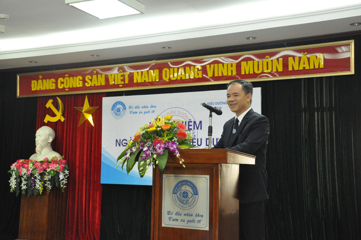 Thay mặt lãnh đạo bệnh viện, PGS.TS. Nguyễn Xuân Hiệp đã biểu dương nỗ lực cố gắng của anh chị em điều dưỡng, kỹ thuật viên bệnh viện trong suốt thời gian qua. Sự nỗ lực cố gắng đó theo PGS. Nguyễn Xuân Hiệp thể hiện ở nhiều mặt: khối điều dưỡng hiện nay đủ tự tin trình bày báo cáo khoa học tại các hội nghị trong nước và quốc tế; đủ khả năng thực hiện các nghiên cứu khoa học độc lập; đủ kiến thức và trình độ giảng dạy đồng thời cũng là người cộng sự là cánh tay phải của lãnh đạo khoa và Ban giám đốc bệnh viện. Tuy nhiên Giám đốc bệnh viện cũng yêu cầu khối điều dưỡng trong thời gian tới cần tiếp tục phát huy tinh thần đoàn kết, nâng cao trình độ kiến thức chuyên môn, đẩy mạnh hoạt động nghiên cứu khoa học và đào tạo nhằm đưa công tác điều dưỡng của bệnh viện không ngừng phát triển, ngang bằng với các đơn vị y tế hàng đầu trong nước và tiệm cận với trình độ khu vực. PGS.TS. Nguyễn Xuân Hiệp cũng thay mặt bệnh viện cảm ơn Hội Điều dưỡng Việt Nam, Hội Điều dưỡng Hà Nội, phòng Điều dưỡng Tiết chế Bộ Y tế trong thời gian qua đã luôn quan tâm giúp đỡ, giúp lãnh đạo bệnh viện nắm được đường lối, chính sách, chủ trương cũng như truyền tâm huyết cho công tác điều dưỡng của bệnh viện. Kết thúc buổi lễ, Hội nghị đã được nghe Ths. Phạm Đức Mục – Chủ tịch Hội Điều dưỡng Việt Nam chia sẻ những tâm sự, những kỷ niệm trong suốt hơn 40 năm công tác trong ngành điều dưỡng. Đây cũng là những bài học, những kinh nghiệm quý báu mà Chủ tịch Hội Điều dưỡng muốn gửi gắm đến những điều dưỡng, KTV trẻ ở bệnh viện Mắt TW.