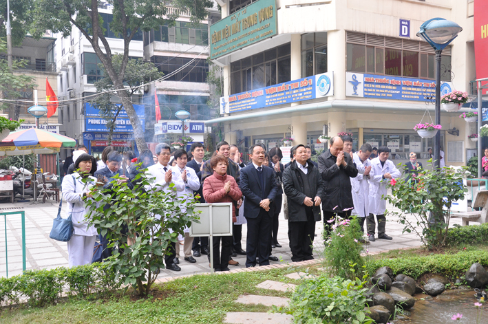 Trong không khí trang nghiêm, thành kính, TS. Nguyễn Xuân Hiệp thay mặt toàn thể CBVC bệnh viện dâng hương tưởng nhớ Chủ tịch Hồ Chí Minh, vị lãnh tụ thiên tài, Anh hùng giải phóng dân tộc, danh nhân văn hóa thế giới, người đã khai sinh ra nước Việt Nam dân chủ cộng hòa, nay là nước Cộng hòa xã hội chủ nghĩa Việt Nam. Người lúc sinh thời đã giành sự quan tâm đặc biệt đến ngành y tế nói chung, ngành nhãn khoa nói riêng. Sự ra đời chính thức của Viện Mắt hột – tiền thân của Bệnh viện Mắt TW ngày nay cũng chính bắt nguồn từ chuyến thăm đặc biệt của Người cách đây hơn 60 năm. TS. Nguyễn Xuân Hiệp cũng bày tỏ lòng tri ân các thế hệ lãnh đạo tiền nhiệm đã dày công xây dựng bệnh viện, hứa với các thế hệ lãnh đạo tiền nhiệm toàn thể CBVC bệnh viện sẽ nỗ lực đoàn kết, phấn đấu, đưa bệnh viện ngày càng phát triển. TS. Nguyễn Xuân Hiệp mong muốn các cán bộ lãnh đạo bệnh viện đã nghỉ hưu, gia đình các cố lãnh đạo tiền nhiệm sẽ cung cấp, bổ sung cho phòng Truyền thống thêm những tư liệu, hiện vật để phòng Truyền thống ngày càng phong phú, thực sự là nơi giáo dục truyền thống của một bệnh viện Anh hùng với bề dày hơn 100 năm cho các thế hệ trẻ sau này.