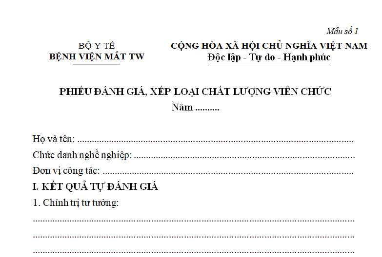 Biểu mẫu bản đánh giá viên chức, người lao động năm 2021
