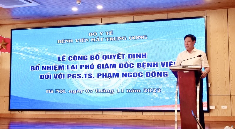Phát biểu tại lễ trao quyết định, đồng chí Đỗ Xuân Tuyên, Thứ trưởng Bộ Y tế chúc mừng PGS.TS.Phạm Ngọc Đông tiếp tục được tín nhiệm giữ chức vụ Phó Giám đốc phụ trách chuyên môn Bệnh viện Mắt Trung ương.