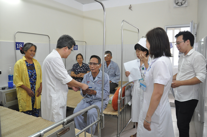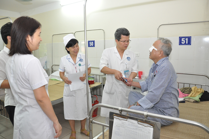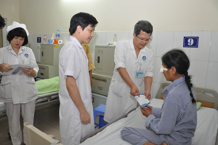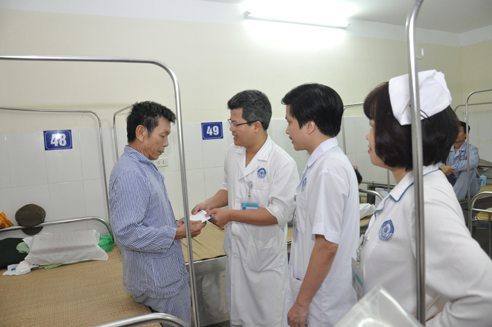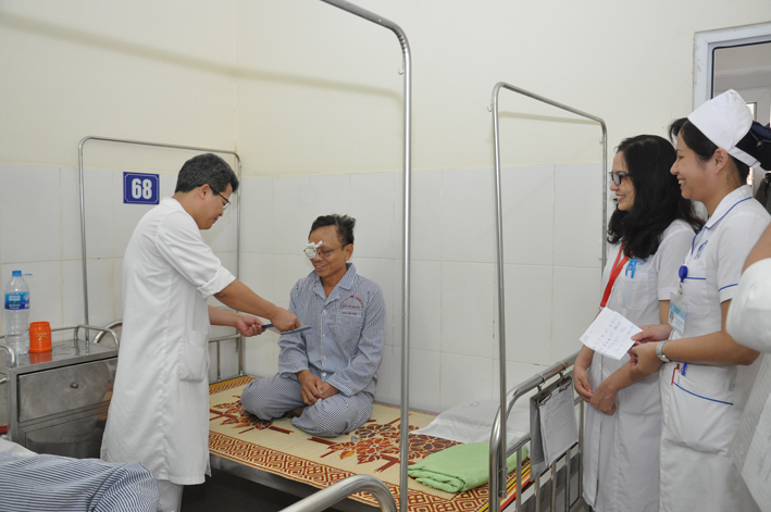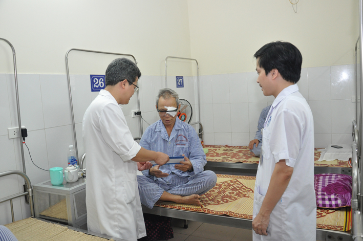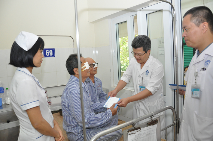 Chiều cùng ngày TS. Phạm Ngọc Đông – Phó Giám đốc bệnh viện cùng đại diện Phòng Tổ chức Cán bộ, tổ Công tác xã hội và lãnh đạo các khoa lâm sàng đã đến từng giường bệnh thăm, tặng quà 14 bệnh nhân là thương binh, vợ và con liệt sĩ đang điều trị nội trú tại bệnh viện, tặng quà 3 CBVC là con liệt sĩ hiện đang công tác tại bệnh viện. TS. Phạm Ngọc Đông cảm ơn sự hy sinh to lớn của các thương bệnh binh, động viên các thương bệnh binh yên tâm điều trị. TS. Phạm Ngọc Đông cũng đề nghị lãnh đạo các khoa dành mọi điều kiện cũng như có chế độ điều trị tốt nhất để các bệnh nhân sớm bình phục ra viện. Các bệnh nhân đều hết sức xúc động và cảm ơn sự quan tâm của bệnh viện. Ông Trịnh Quang Huy, 66 tuổi, thương binh loại A tại chiến trường Quảng Trị năm 1972 hiện đang điều trị tại khoa Đáy mắt – Màng bồ đào thay mặt các bệnh nhân chính sách bày tỏ sự hài lòng đối với công tác điều trị cũng như chế độ chăm sóc hậu phẫu, vệ sinh buồng bệnh… Ông gửi lời cảm ơn đối với sự quan tâm của lãnh đạo bệnh viện, chúc bệnh viện đạt nhiều thành tích trong sự nghiệp chăm sóc sức khỏe nhân dân.