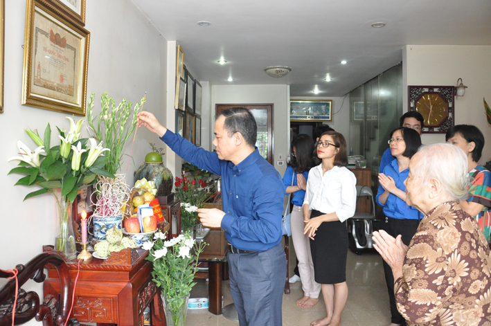 Đoàn cũng đã đến nhà thăm hỏi, tặng quà bà Doãn Ngọc Trâm là mẹ của Anh hùng liệt sĩ Đặng Thùy Trâm. Tại đây PGS.TS. Nguyễn Xuân Hiệp khái quát với bà Doãn Ngọc Trâm những hoạt động của bệnh viện. Trong đó nhấn mạnh đến việc xây dựng truyền thống, tri ân những thế hệ đi trước, khơi gợi niềm tự hào cho các thế hệ thầy thuốc trẻ như việc biên tập và xuất bản cuốn sách kỷ niệm 100 năm thành lập bệnh viện, xây dựng phòng Truyền thống, sưu tầm tư liệu hiện vật trưng bày tại phòng Truyền thống, hoạt động của phòng khám mang tên AHLS Đặng Thùy Trâm… Bà Doãn Ngọc Trâm và gia đình rất phấn khởi trước những đổi mới thành công của bệnh viện, bà hứa trong thời gian tới sẽ gửi tặng phòng Truyền thống Bệnh viện một số kỷ vật của AHLS, bác sĩ Đặng Thùy Trâm.