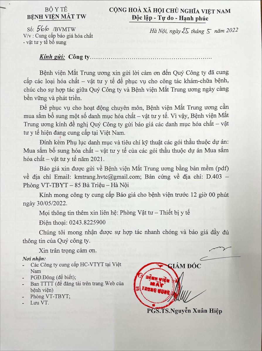 Cung cấp báo giá hóa chất - vật tư y tế bổ sung