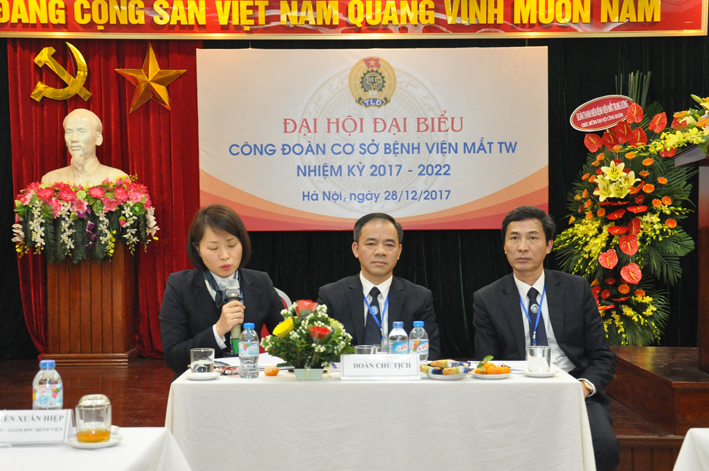 Báo cáo của chủ tịch công đoàn BV Nguyễn Đức Thành đã nêu rõ những thuận lợi và khó khăn trong công tác công đoàn nhiệm kỳ 2012-2017. Trong đó nhấn mạnh sự chỉ đạo của Đảng ủy, BGĐ, đoàn kết đồng lòng của toàn bộ đội ngũ đoàn viên là sức mạnh to lớn giúp bệnh viện hoàn thành xuất sắc mọi nhiệm vụ, vượt qua giai đoạn khó khăn nhất của những năm 2014-2015.Đại hội kết thúc nhiệm kỳ diễn ra trong những ngày cuối năm 2017 đầy thăng hoa: bệnh viện tròn 100 tuổi, được trao tặng Huân chương Độc lập hạng III, vinh dự được Thủ tướng đến thăm và làm việc…BCH cũng thẳng thắn nghiêm túc ghi nhận những tồn tại để nhiệm kỳ mới có thể khắc phục: hoạt động công đoàn còn có lúc chìm lắng, không đồng đều, thiếu tính sáng tạo, chưa ngang tầm với đà phát triển chung của bệnh viện. Phát biểu chỉ đạo đại hội, đồng chí Trần Thị Bích Hằng - Chủ tịch CĐYT Việt Nam đã nhiệt liệt biểu dương và ghi nhận những thành tích nổi bật của bệnh viện: các phong trào thi đua yêu nước, hoạt động văn thể mỹ, đặc biệt là hoạt động nghiên cứu khoa học của bệnh viện là rất ấn tượng. Các hoạt động thiện nguyện của bệnh viện: hiến máu tình nguyện, ủng hộ các quĩ xã hội cũng rất đáng học tập nhưng cần đầy mạnh công tác phát triển Đảng cho công đoàn viên ưu tú, quan tâm hơn nữa đến công tác truyền thông. Truyền thông không chỉ một chiều hướng đến sự hài lòng của người bệnh mà còn là giáo dục bệnh nhân và người nhà họ tuân thủ nội qui, hợp tác, tạo điều kiện để nhân viên y tế hoàn thành tốt nhiệm vụ.