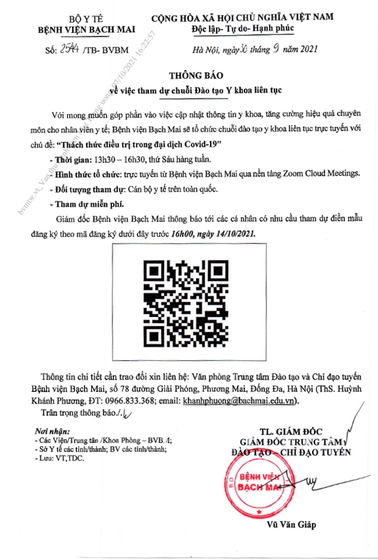 Đào tạo y khoa liên tục với chủ đề "Thách thức điều trị trong đại dịch covid19" do BV Bạch Mai tổ chức