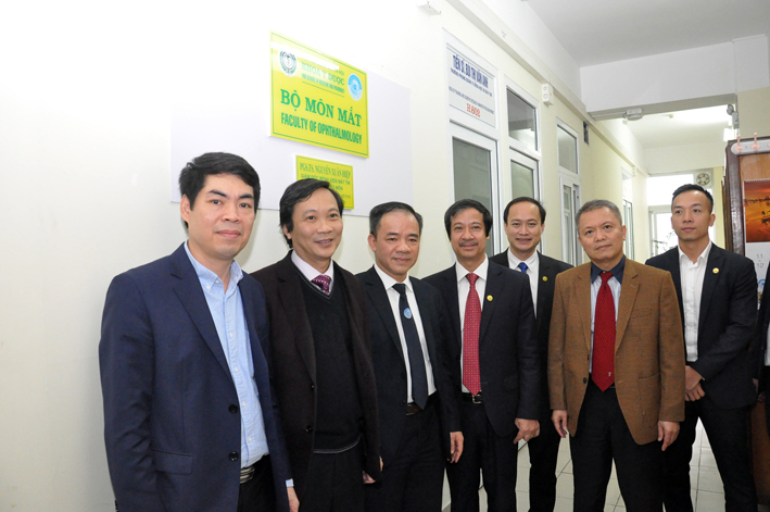Kết thúc buổi lễ là nghi thức treo biển Bộ môn Mắt- Khoa Y dược ĐHQG tại phòng H602, nhà H , Bệnh viện Mắt Trung ương.
