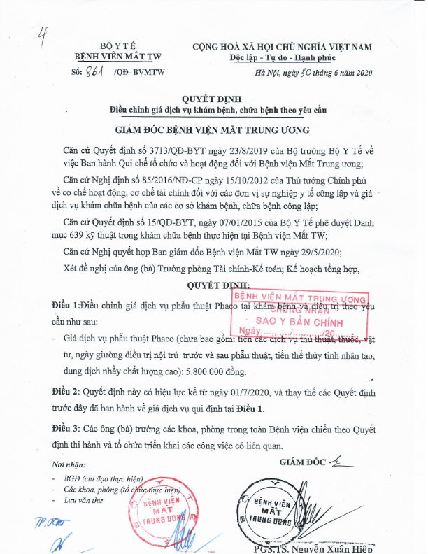 Quyết định ban hành giá dịch vụ Laser femtosecond điều trị tật khúc xạ