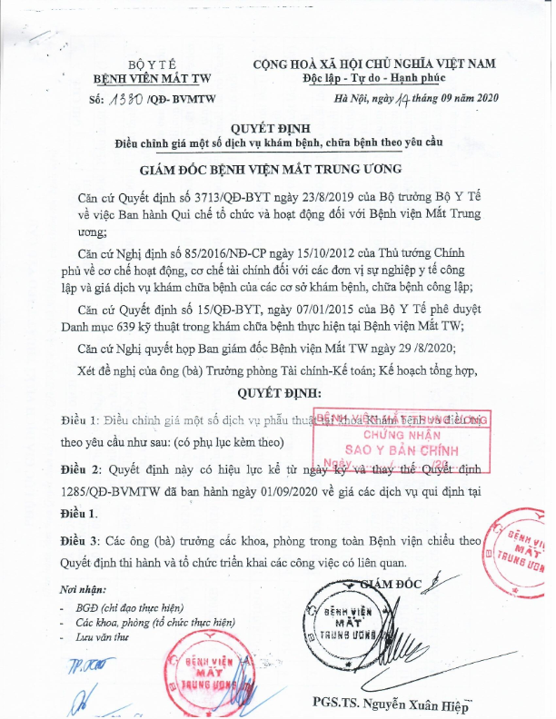 Quyết định ban hành giá dịch vụ Laser femtosecond điều trị tật khúc xạ