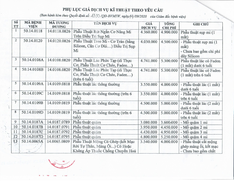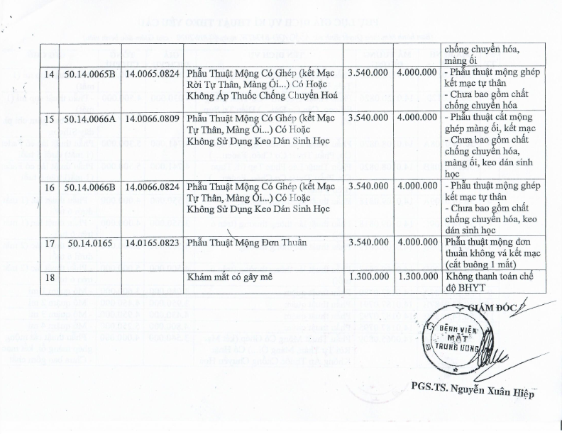 Điều chỉnh giá một số dịch vụ phẫu thuật tại Khoa Khám bệnh và điều trị theo yêu cầu