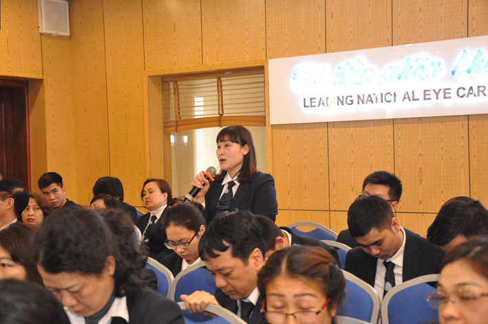 Mở đầu Hội nghị đồng chí Phạm Ngọc Đông – PGĐ Bệnh viện đã trình bày báo cáo tổng kết công tác năm 2018. Năm 2018 bệnh viện tiếp tục hoàn thành vượt mức các chỉ tiêu được giao với tổng số khám 520.000 bệnh nhân so với năm 2017 là 497.000, tổng số phẫu thuật các loại đạt gần 60.000 ca. Công tác xây dựng, cải tạo mặt bằng, tận dụng diện tích …đã làm thay đổi cơ bản diện mạo của bệnh viện. Chất lượng điều trị, công tác quản lý chất lượng ngày càng qui củ. Phong trào Xanh- Sạch-Đẹp , hướng tới sự hài lòng của người bệnh tiếp tục khởi sắc . Công tác đào tạo, nghiên cứu khoa học, hợp tác quốc tế , chỉ đạo tuyến ngày càng đa dạng và có thêm những thành tựu mới. Công tác Đảng đoàn, công tác xã hội và từ thiện có nhiều thành tích, góp phần không nhỏ vào thành công của Bệnh viện. Với những nỗ lực không mệt mỏi và thành tích không thể phủ nhận, Đoàn kiểm tra đánh giá chất lượng bệnh viện Bộ Y tế năm 2018 làm việc tại Bệnh viện Mắt TW đã xếp loại xuất sắc cho các kết quả hoạt động năm 2018 của bệnh viện Mắt TW với tổng điểm 4.16.