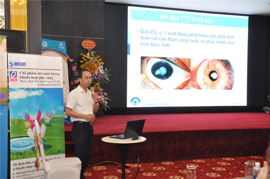 Phát biểu khai mạc phần 1 Hội thảo khoa học chuyên đề Mắt trẻ em, PGS.TS. Vũ Thị Bích Thủy cho biết chủ đề hội thảo lần này tập vào bệnh lý đục thể thủy tinh trẻ em trùng vào dịp kỷ niệm 10 năm hoạt động của CLB Mắt trẻ em, Các đại biểu đã trình bày 8 báo cáo khoa học cập nhật kiến thức mới về bệnh lý đục thể thủy tinh ở trẻ em, kinh nghiệm điều trị và theo dõi.