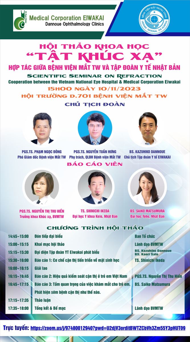 Bệnh viện Măt Trung ương hợp tác với tập đoàn y tế Nhật Bản sẽ tổ chức Hội thảo tật khúc xạ vào ngày 10/11/2023