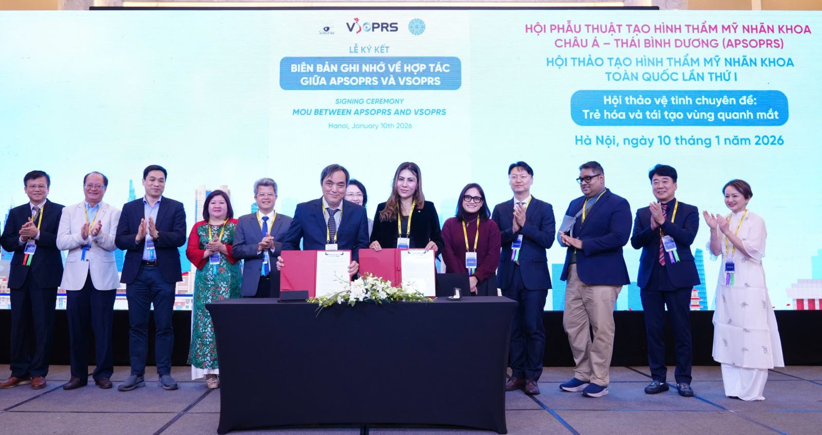 Nằm trong khuôn khổ Hội thảo, Hội Phẫu thuật Tạo hình và Thẩm mỹ Nhãn khoa Việt Nam (VSOPRS) đã chính thức ra đời với Ban chủ nhiệm, Ban chấp hành và Qui chế hoạt động…Các đại biểu cũng đã chứng kiến lễ Ký biên bản hợp tác ghi nhớ(MOU) về hợp tác nghiên cứu khoa học và trao đổi đào tạo giữa APSOPRS - Hội nhãn khoa Việt nam(VOS) và VSOPRS.