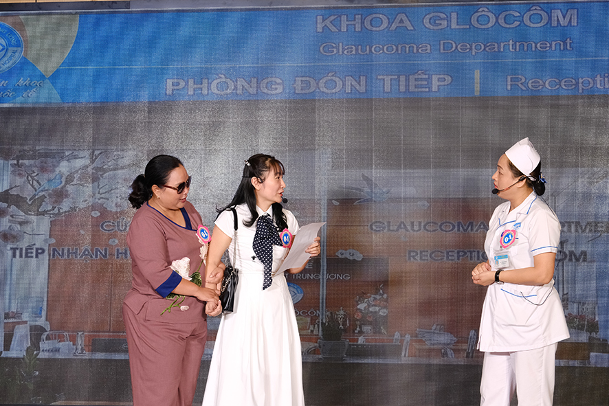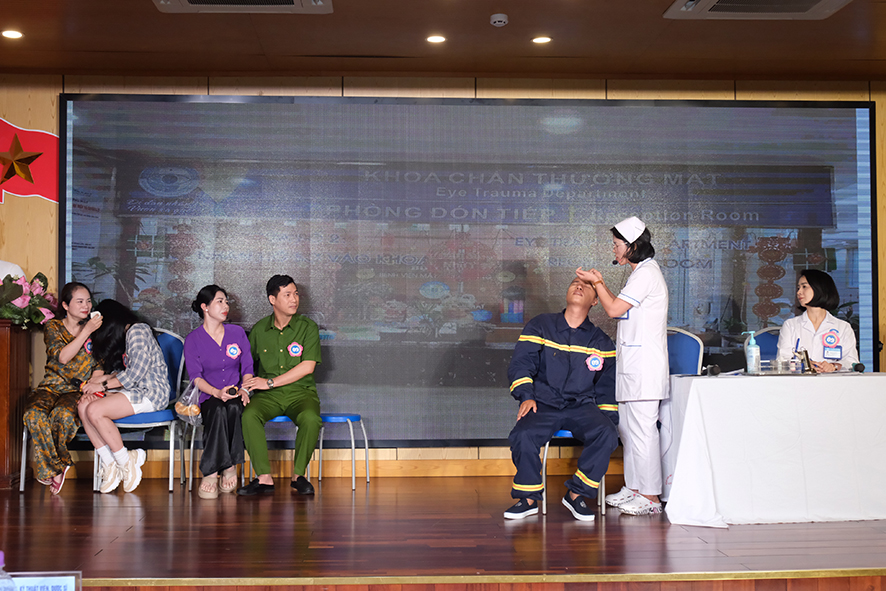 Đặc biệt, tiểu phẩm thứ 11 với Hội thi của chính Giám đốc Bệnh viện Mắt Trung ương Phạm Ngọc Đông, vừa trong vai nhân viên đón tiếp, vừa trong vai lãnh đạo Bệnh viện, lại vừa trong vai bác sỹ điều trị đã mang đến bất ngờ và thú vị của Hội thi năm nay.