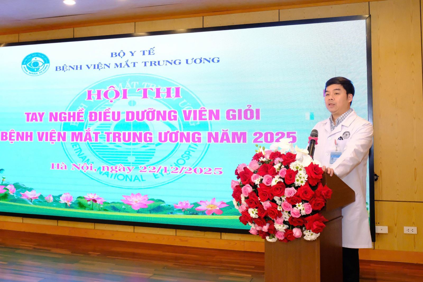 Trong vai trò Chủ tịch Hội đồng chấm thi, TS Nguyễn Văn Huy, Phó Giám đốc Bệnh viện Mắt Trung ương chía sẻ, vai trò của điều dưỡng vô cùng quan trọng trong quá trình điều trị, là cầu nối giữa bác sỹ điều trị với bệnh nhân. Lực lượng điều dưỡng viên chiếm một lực lượng đông đảo trong bệnh viện, với công việc đặc thù, có thời gian tiếp xúc trực tiếp, thường xuyên với người bệnh. Chất lượng chăm sóc người bệnh chuyển biến rõ nét hay không thông qua việc đổi mới các mô hình phân công chăm sóc, tổ chức chăm sóc người bệnh toàn diện, chuẩn hóa các quy trình kỹ thuật điều dưỡng, kỹ thuật viên.