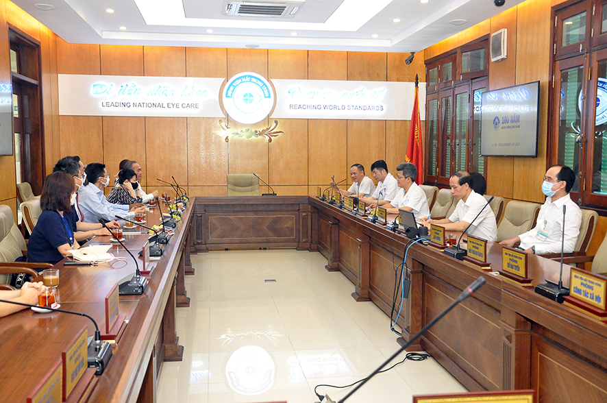 Mục đích chuyến thăm và làm việc giữa 2 bên nhằm tăng cường mối liên kết chặt chẽ giữa các thành viên cấp lãnh đạo và nhóm điều hành; Đào tạo thí điểm đội ngũ giảng viên tại Bệnh viện Mắt TW bằng giảng dạy và thảo luận tương tác trực tiếp, tiến tới xây dựng chương trình cho toàn hệ thống nhãn khoa Việt Nam. PGS.TS. Nguyễn Xuân Hiệp – Giám đốc bệnh viện, PGS.TS. Cung Hồng Sơn – P.Giám đốcbệnh viện, Giám đốc Trung tâm Đào tạo – Chỉ đạo tuyến, PGS.TS. Bùi Thị Vân Anh – Trưởng phòng QLKH- Đào tạo và các bác sĩ, chuyên viên phòng Đào tạo đã dành nhiều thời gian làm việc với đoàn.