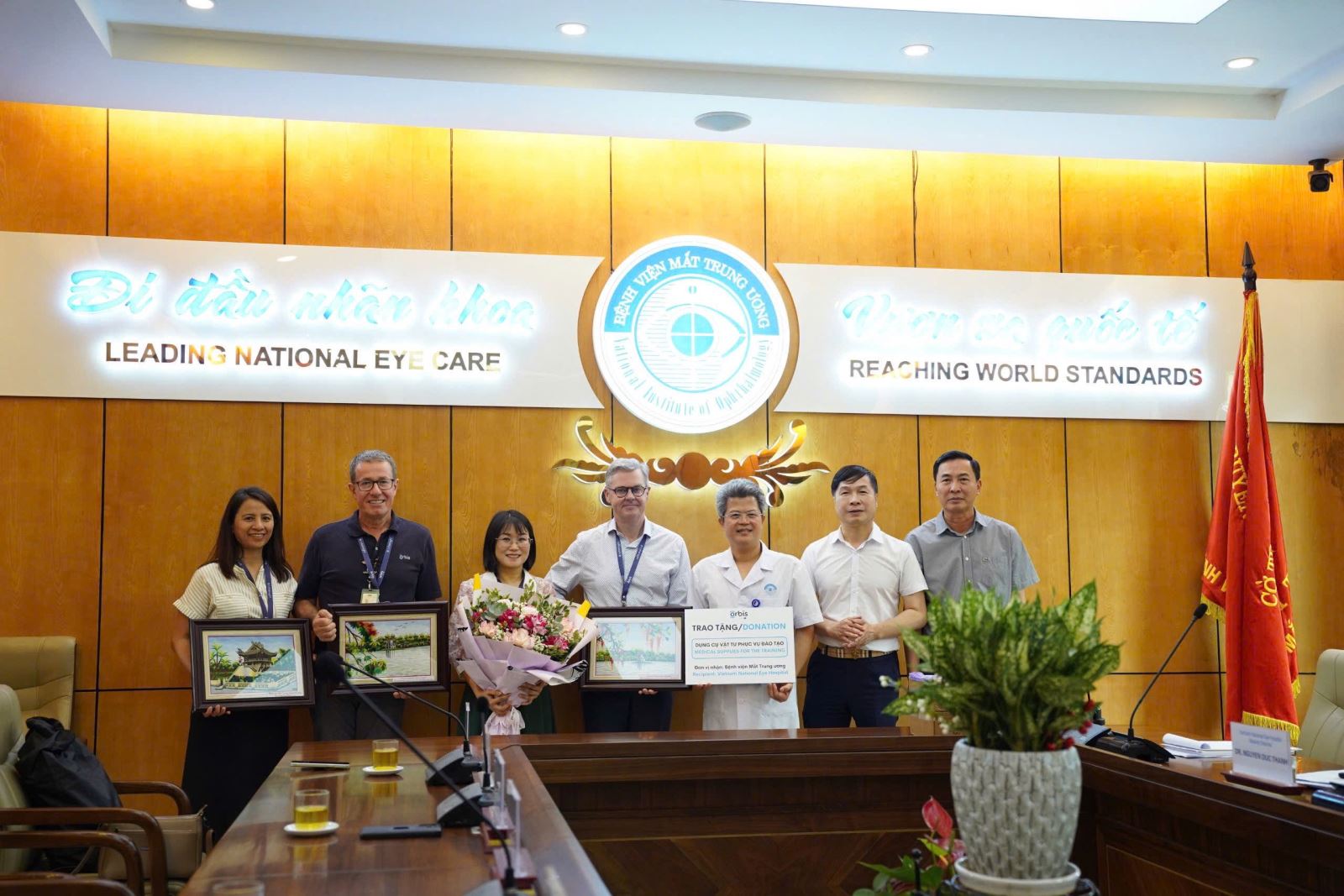 Trong dịp này, tổ chức Orbis trao tặng Bệnh viện Mắt trung ương một số dụng cụ thiết bị nhãn khoa hỗ trợ khóa đào tạo thực hành nhãn khoa tuần qua mang lại hiệu quả cao.