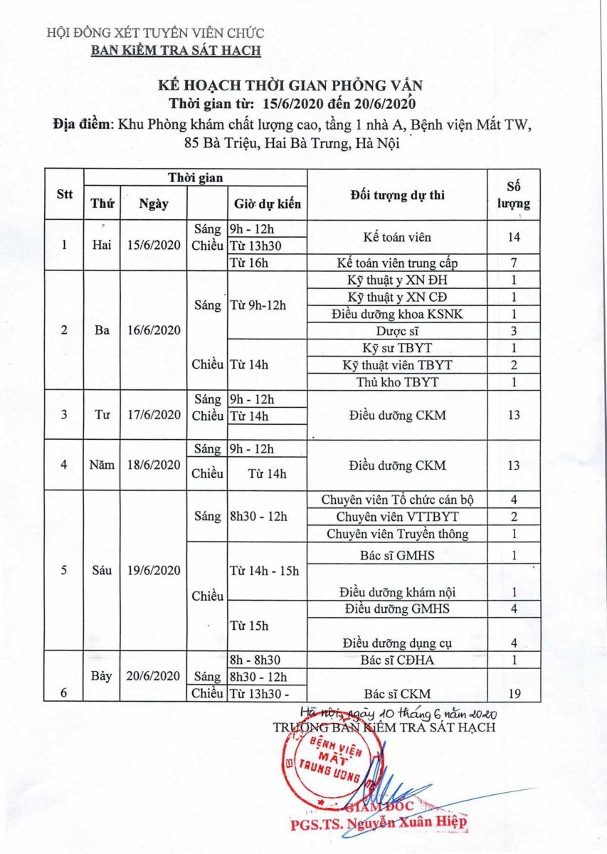 Kế hoạch thời gian phỏng vấn tuyển dụng viên chức năm 2020