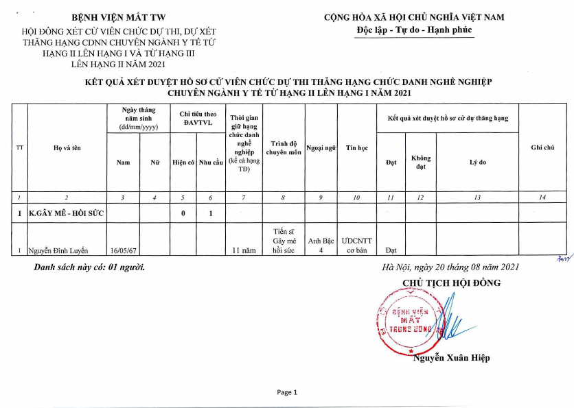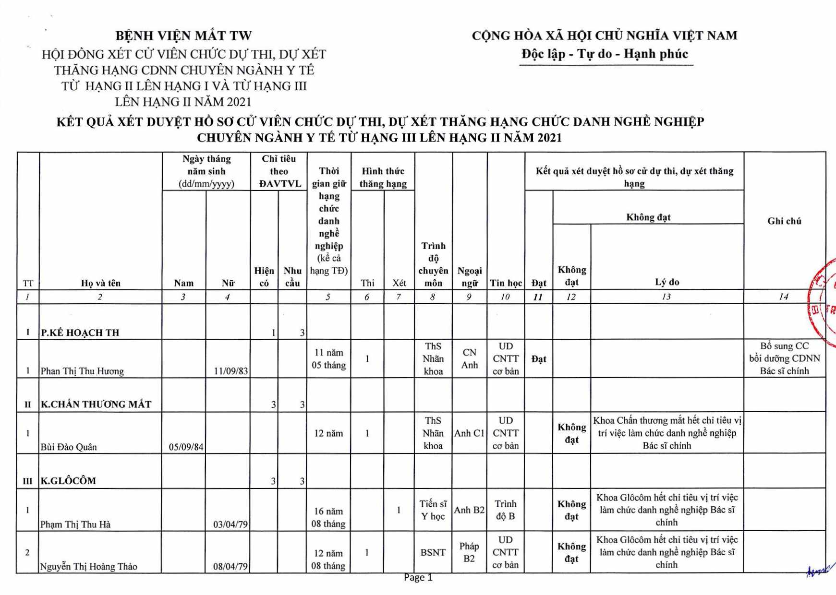 Thông báo: Quyết định về việc công nhận kết quả xét tuyển lao động hợp đồng đối với vị trí việc làm Khúc xạ nhãn khoa