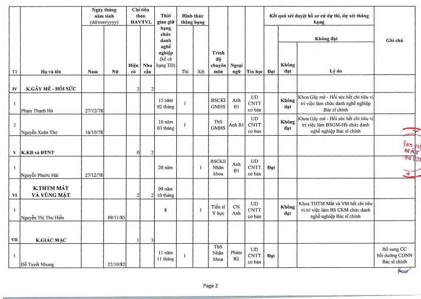 Thông báo: Về việc công nhận kết quả xét tuyển lao động hợp đồng đối với vị trí việc làm Điều dưỡng chuyên khoa mắt