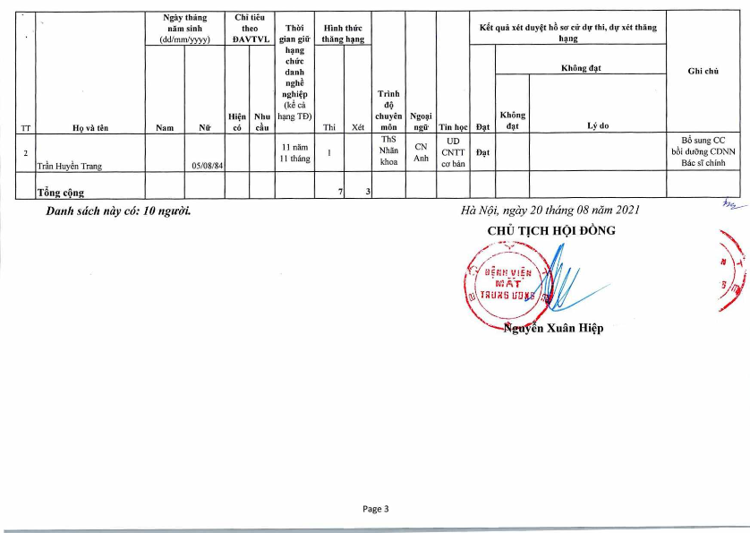 Kết quả duyệt hồ sơ cử viên chức dự thi thăng hạng chức danh nghề nghiệp chuyên ngành y tế từ hạng II lên hạng I năm 2021