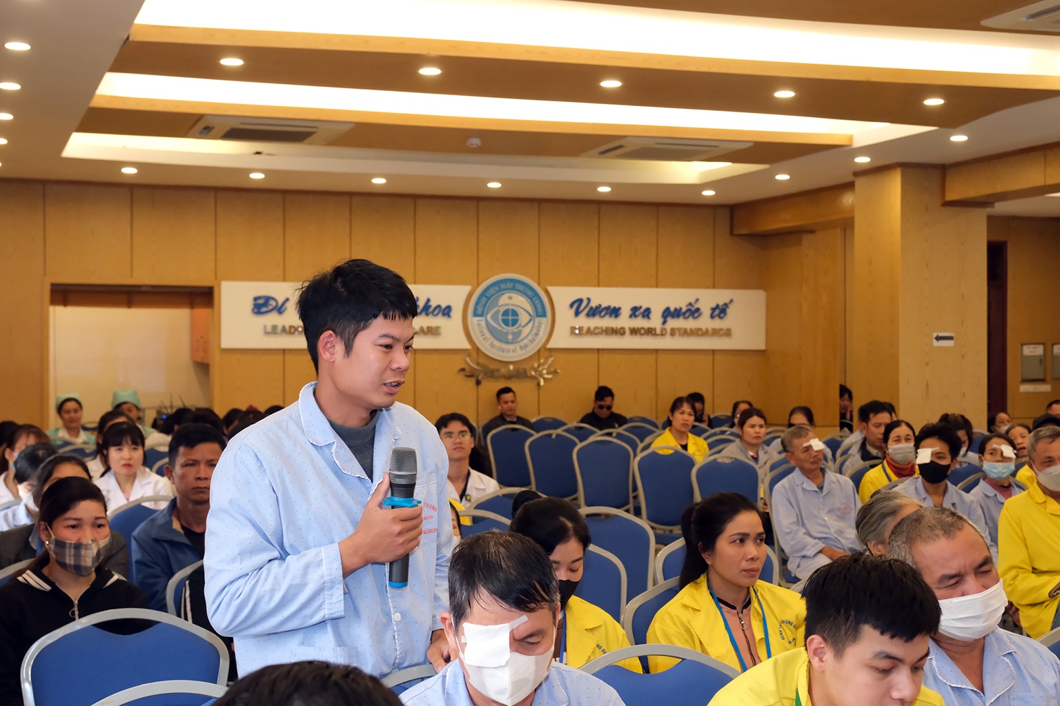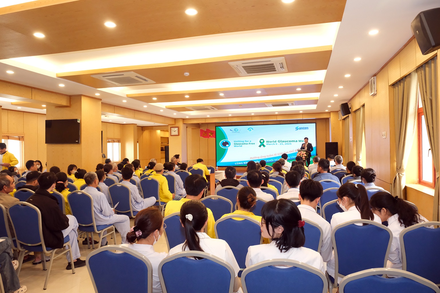 Chủ đề của tuần lễ glôcôm năm nay là “Đoàn kết vì một thế giới không có bệnh glôcôm” hướng tới khuyến cáo cộng đồng tập trung vào việc huy động các cộng đồng trên toàn thế giới cùng nhau đấu tranh chống lại tình trạng mù lòa do bệnh glôcôm gây ra. Hãy tham gia các hoạt động được tổ chức trên toàn cầu, nâng cao nhận thức và tìm hiểu thêm về bệnh glôcôm. Phát hiện sớm giúp ngăn ngừa tình trạng mù lòa không hồi phục do bệnh glôcôm gây nên. Cùng với các hoạt động sôi nổi của các cơ sở y tế hưởng ứng tuần lễ glôcôm trên toàn quốc, từ ngày 9 đến ngày 15/3/2025, khoa Glôcôm Bệnh viện Mắt Trung ương đã tổ chức meeting hưởng ứng, tuyên truyền về bệnh glôcôm cho 200 bệnh nhân và người nhà bệnh nhân. Bên cạnh đó, phòng khám ngoại trú glôcôm đã đo nhãn áp – khám sàng lọc cho 94 bệnh nhân ngoại trú và 14 bệnh nhân khám bảo hiểm y tế.