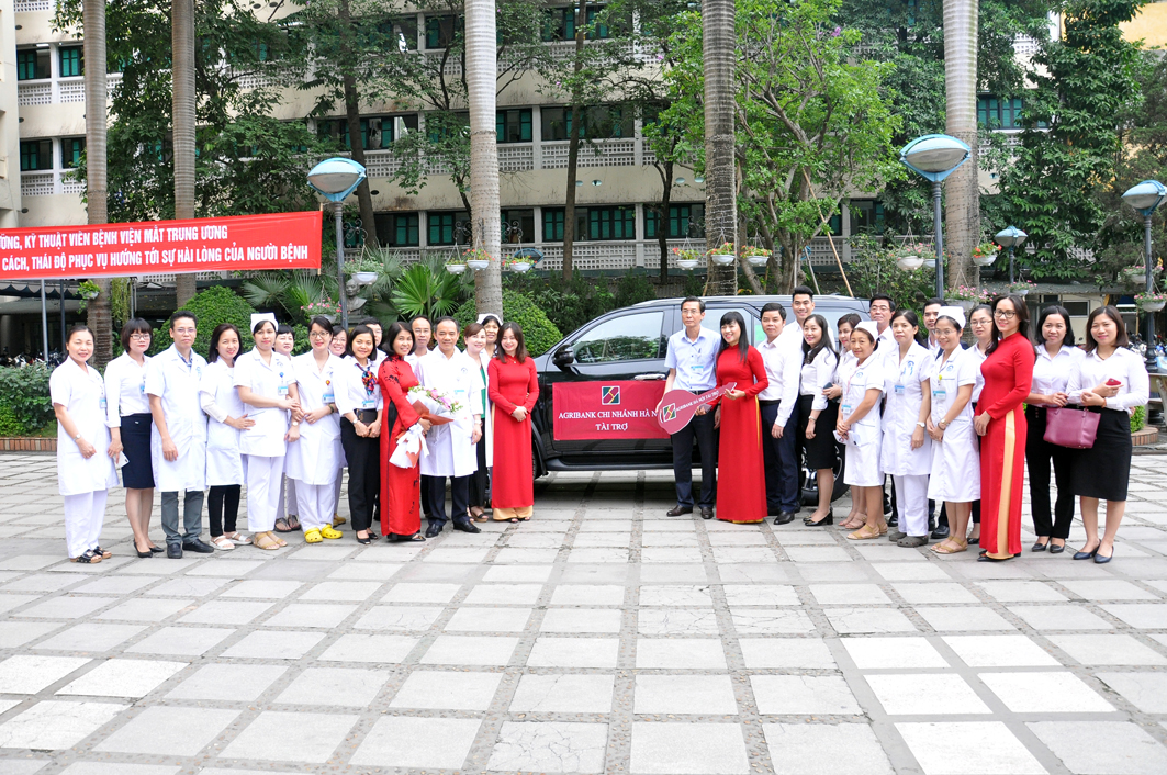 PGS.TS. Nguyễn Xuân Hiệp thay mặt CBVC bệnh viện Mắt TW cảm ơn món quà mà ngân hàng Agribank chi nhánh Hà Nội trao tặng. Bên cạnh giá trị về mặt vật chất, điều đáng quý hơn là tấm lòng, trách nhiệm chung tay đối với sự nghiệp chăm sóc sức khỏe nhân dân của lãnh đạo và cán bộ nhân viên của Agribank chi nhánh Hà Nội. PGS.TS. Nguyễn Xuân Hiệp cam kết bệnh viện sẽ sử dụng chiếc xe một cách hiệu quả, nâng cao chất lượng công tác chỉ đạo tuyến, khám chữa bệnh tại địa phương cũng như các hoạt động của Ngân hàng mắt.