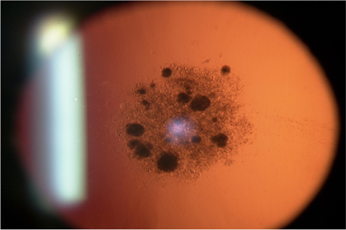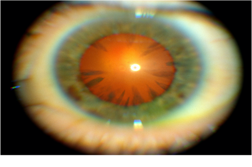 Bệnh Fabry là một bệnh hiếm gặp, liên kết X, rối loạn dự trữ lysosome do thiếu hụt enzym alpha ‐ galactosidase A (a ‐ Gal A). Căn bệnh này dẫn đến sự tích tụ của globotriaosylceramide nội bào, một loại axit béo. Các biểu hiện ở mắt thường gặp ở bệnh Fabry, nhưng thường không gây suy giảm thị lực đáng kể. Mặc dù vết xước giác mạc là dấu hiệu mắt điển hình nhất, hai loại đục thủy tinh thể chính đã được mô tả cùng với bệnh Fabry là đục dưới bao phía trước có thể có mặt và thường là hai bên và hình nêm, với sự phân bố hướng tâm. Đục dưới bao (PSC) hiếm hơn, nhưng rất đặc hiệu cho bệnh. Các PSC phía sau có hình dạng khác biệt với các đường thẳng màu trắng ngà có hình dạng giống như nói trên nằm gần bao sau. Đục thủy tinh thể ở bệnh Fabry được phát hiện tốt nhất bằng cách sử dụng chiếu sáng retro.