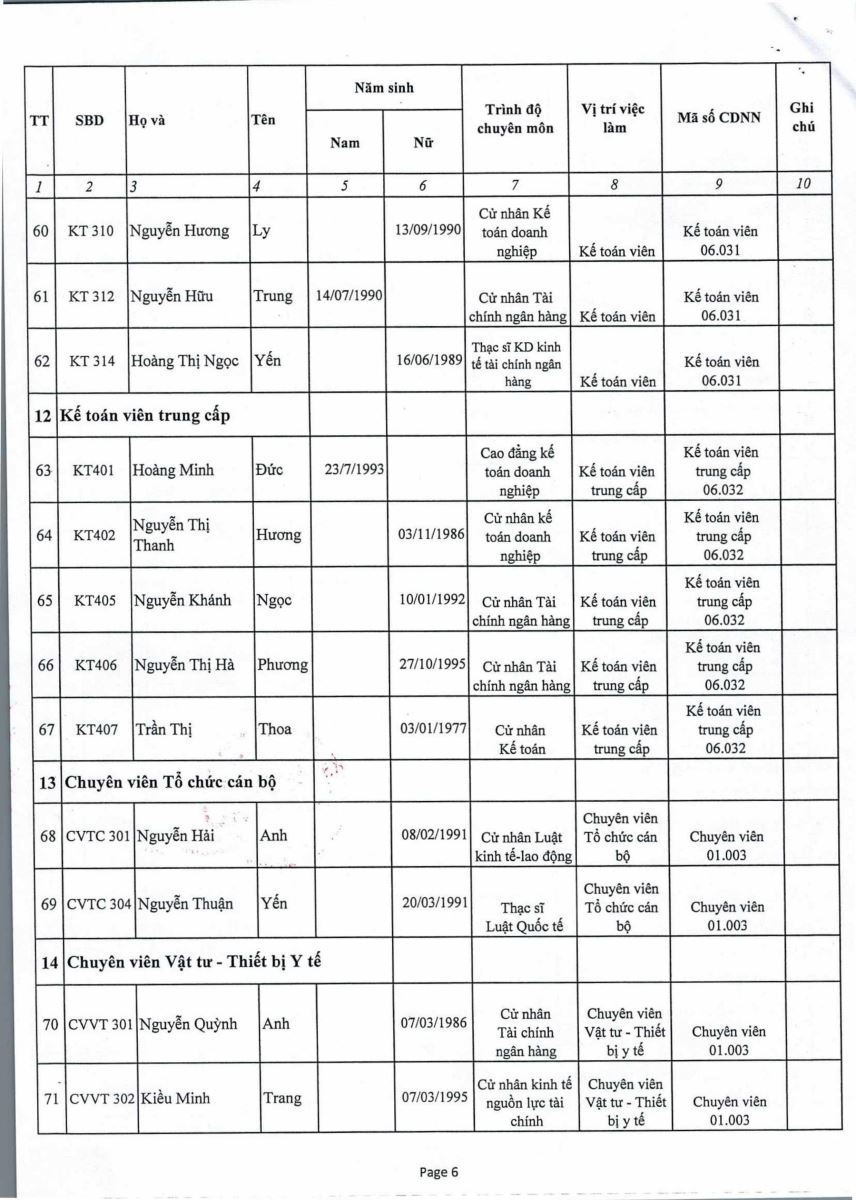 Thông báo : Kết quả trúng tuyển Nhân viên tiếp đón thuộc Phòng Công Tác Xã Hội