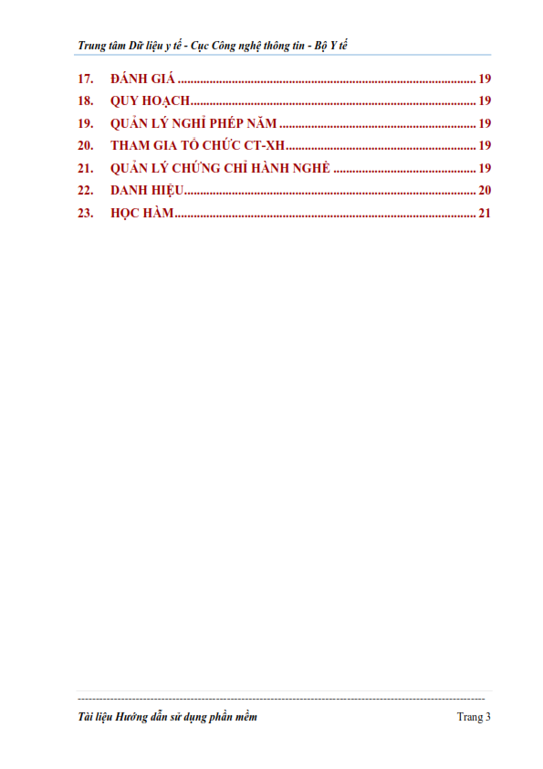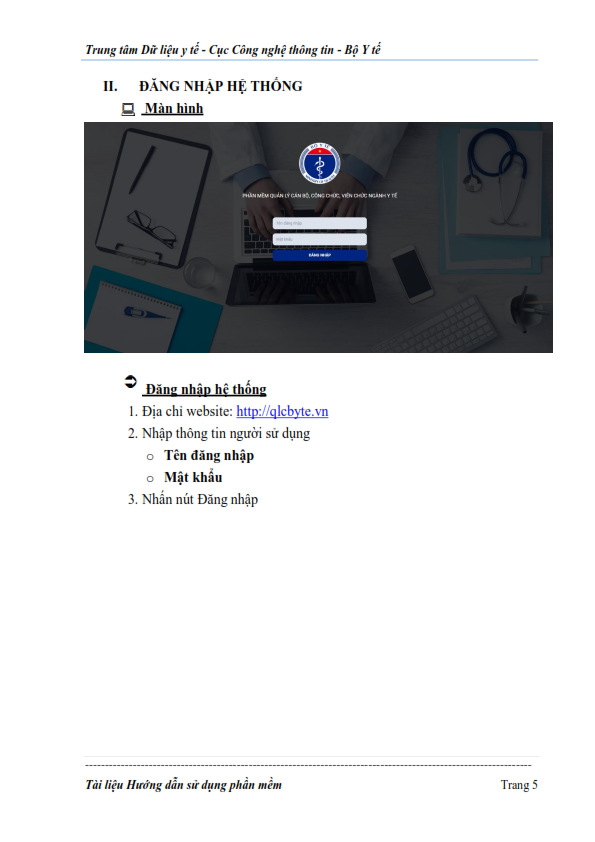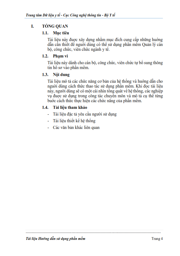 Tài liệu này đuợc xây dựng nhằm mục đích cung cấp những huớng dẫn cần thiết để nguời dùng có thể sử dụng phần mềm Quản lý cán bộ, công chức, viên chức ngành y tế.