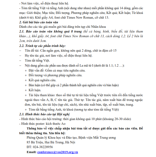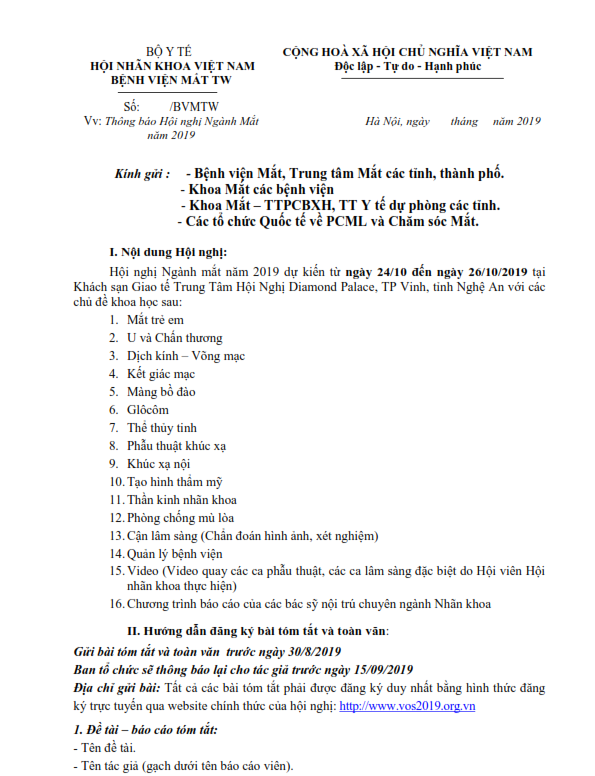Thông báo Hội nghị Ngành Mắt năm 2019