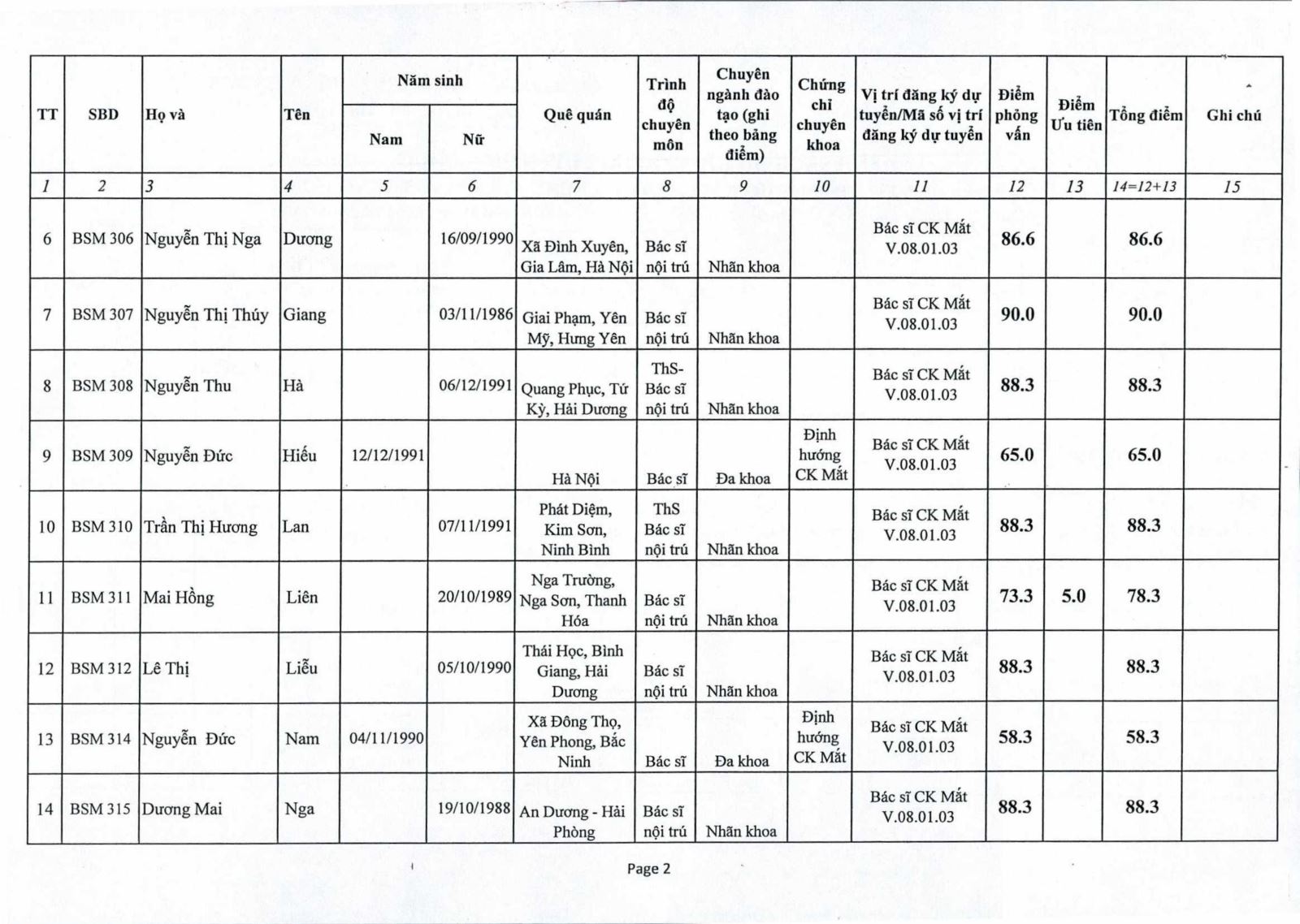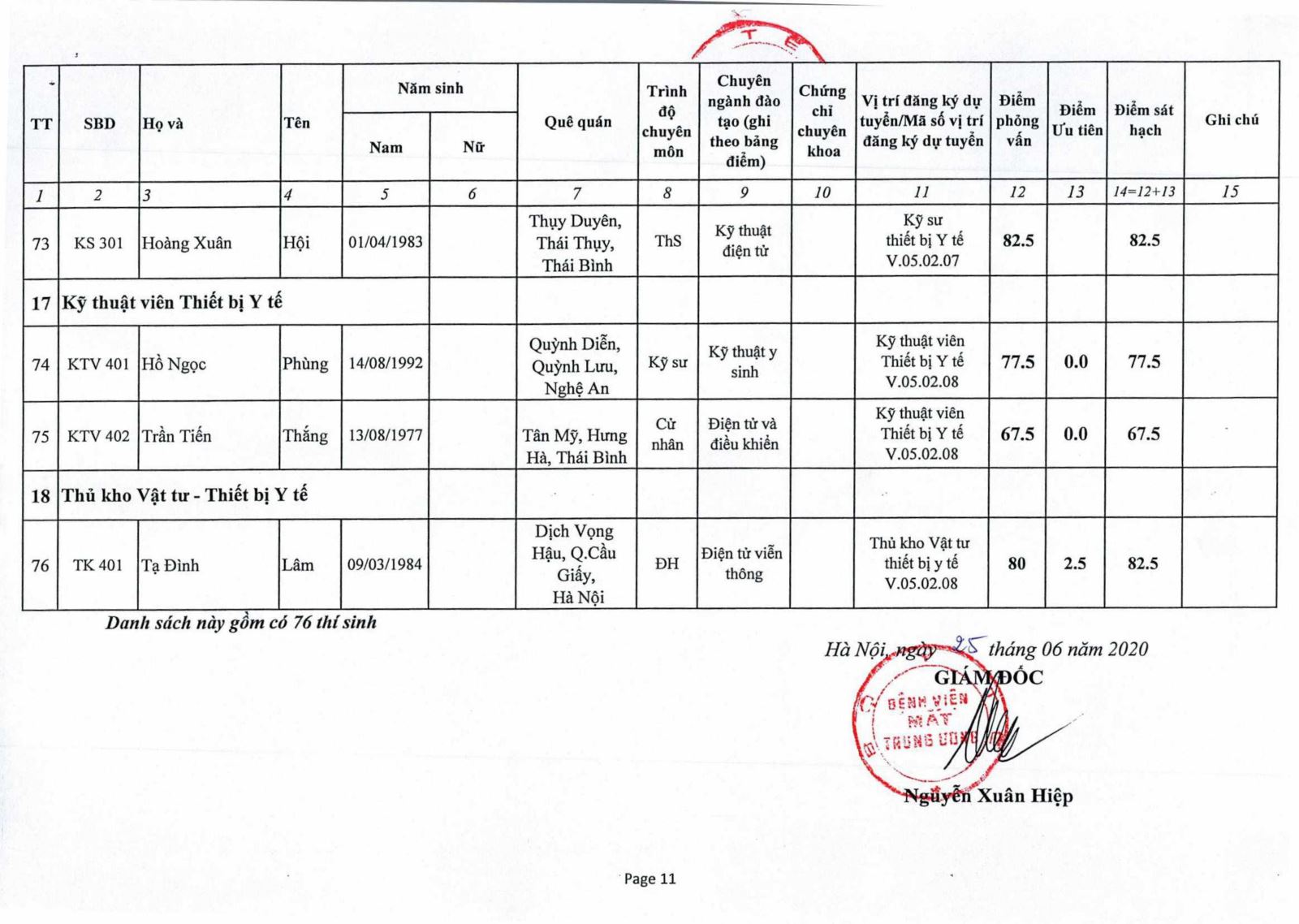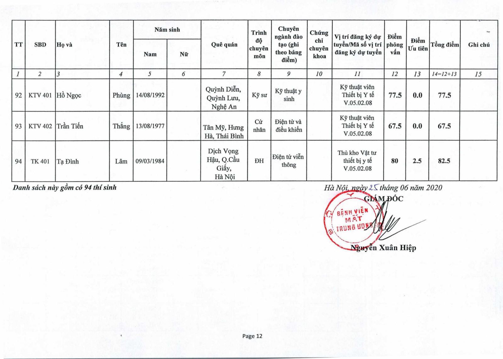 Thông báo - Kết quả xét tuyển viên chức và dự kiến thí sinh trúng tuyển trong kỳ xét tuyển viên chức năm 2020 của Bệnh viện Mắt Trung ương