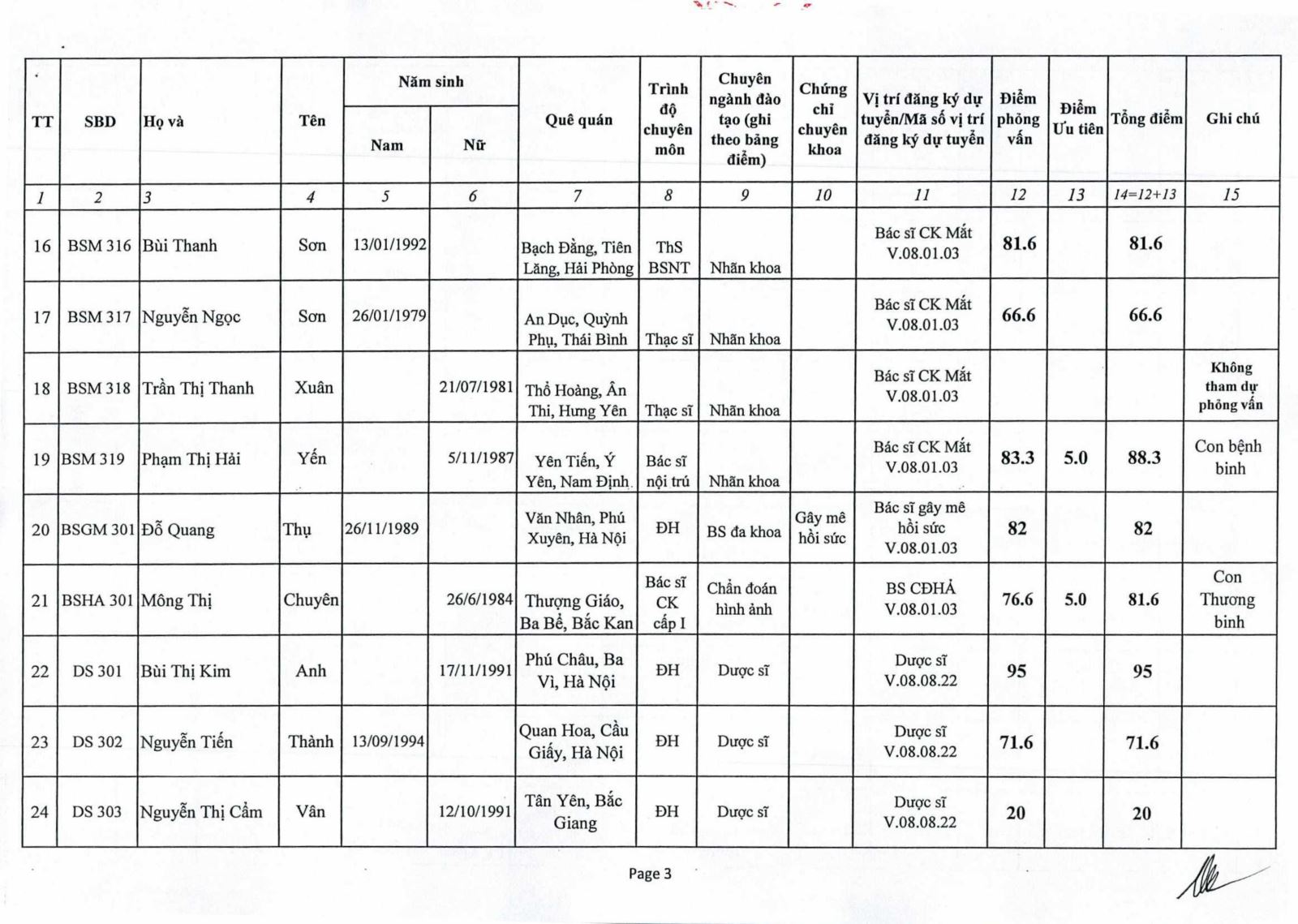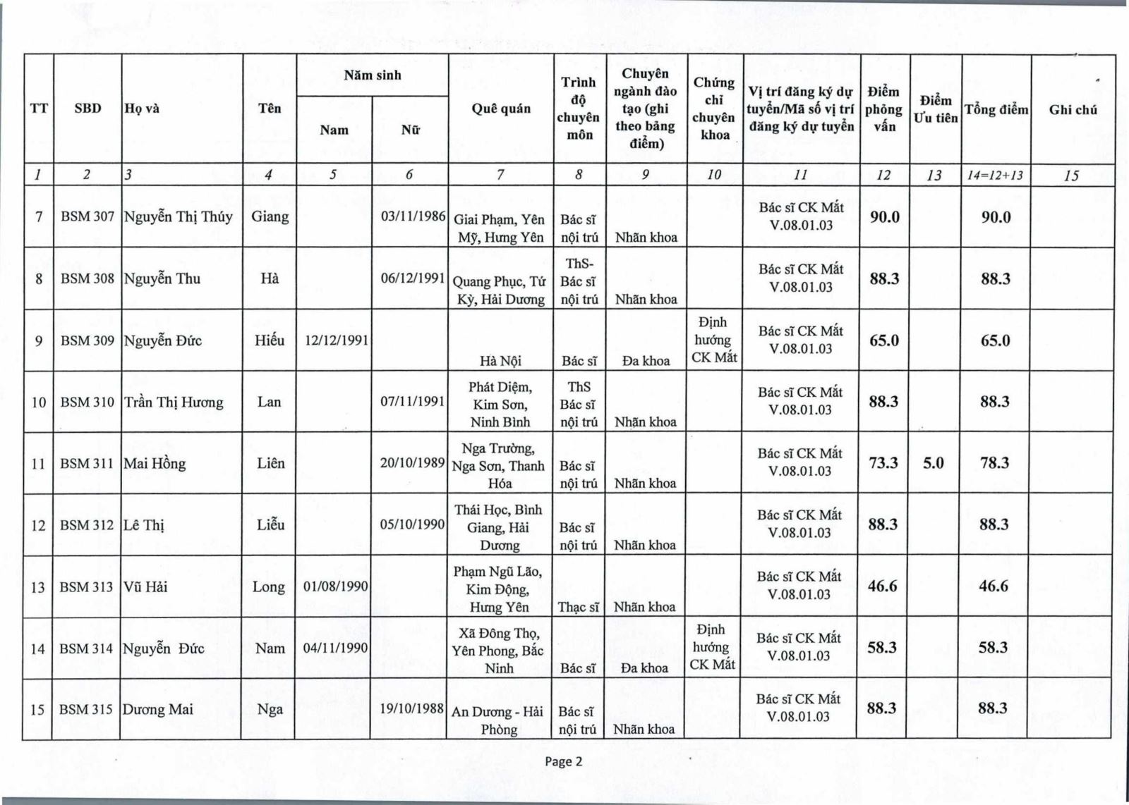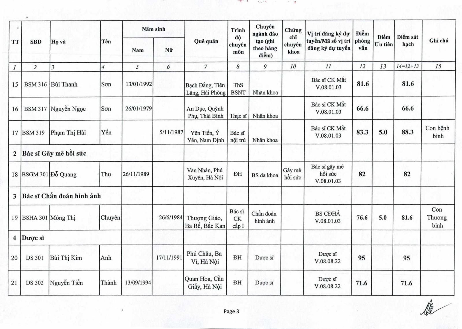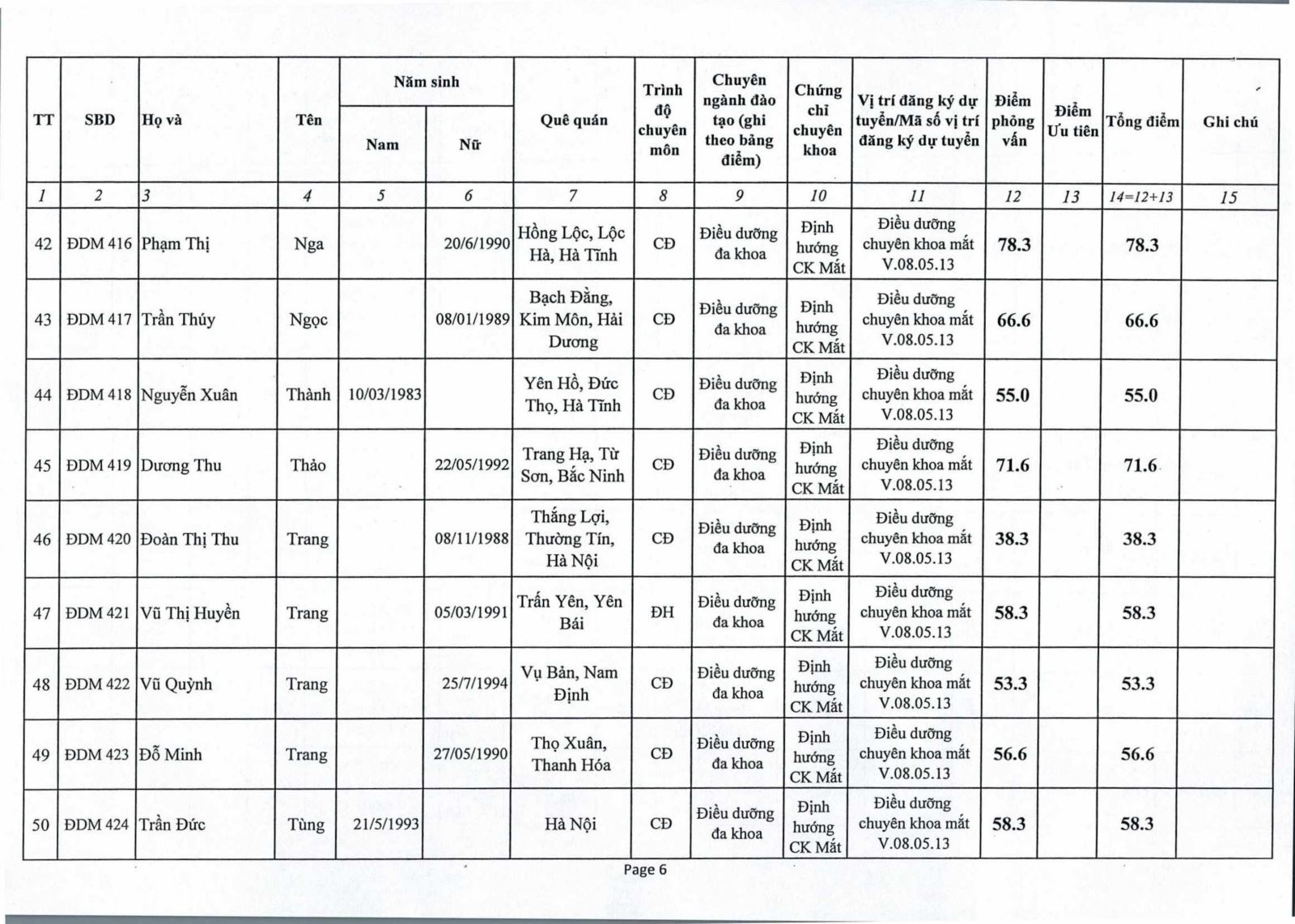Thông báo - Kết quả xét tuyển viên chức và dự kiến thí sinh trúng tuyển trong kỳ xét tuyển viên chức năm 2020 của Bệnh viện Mắt Trung ương