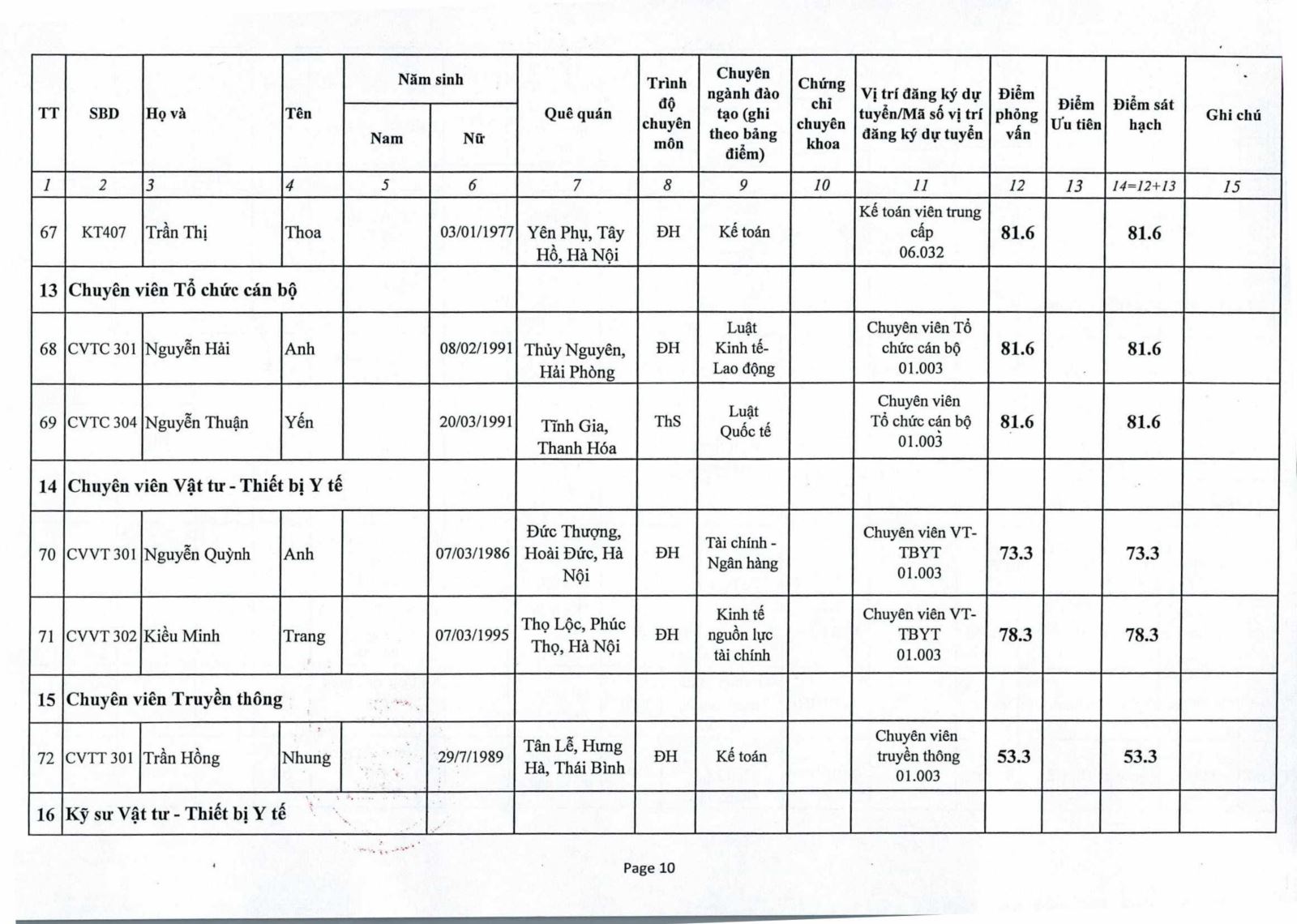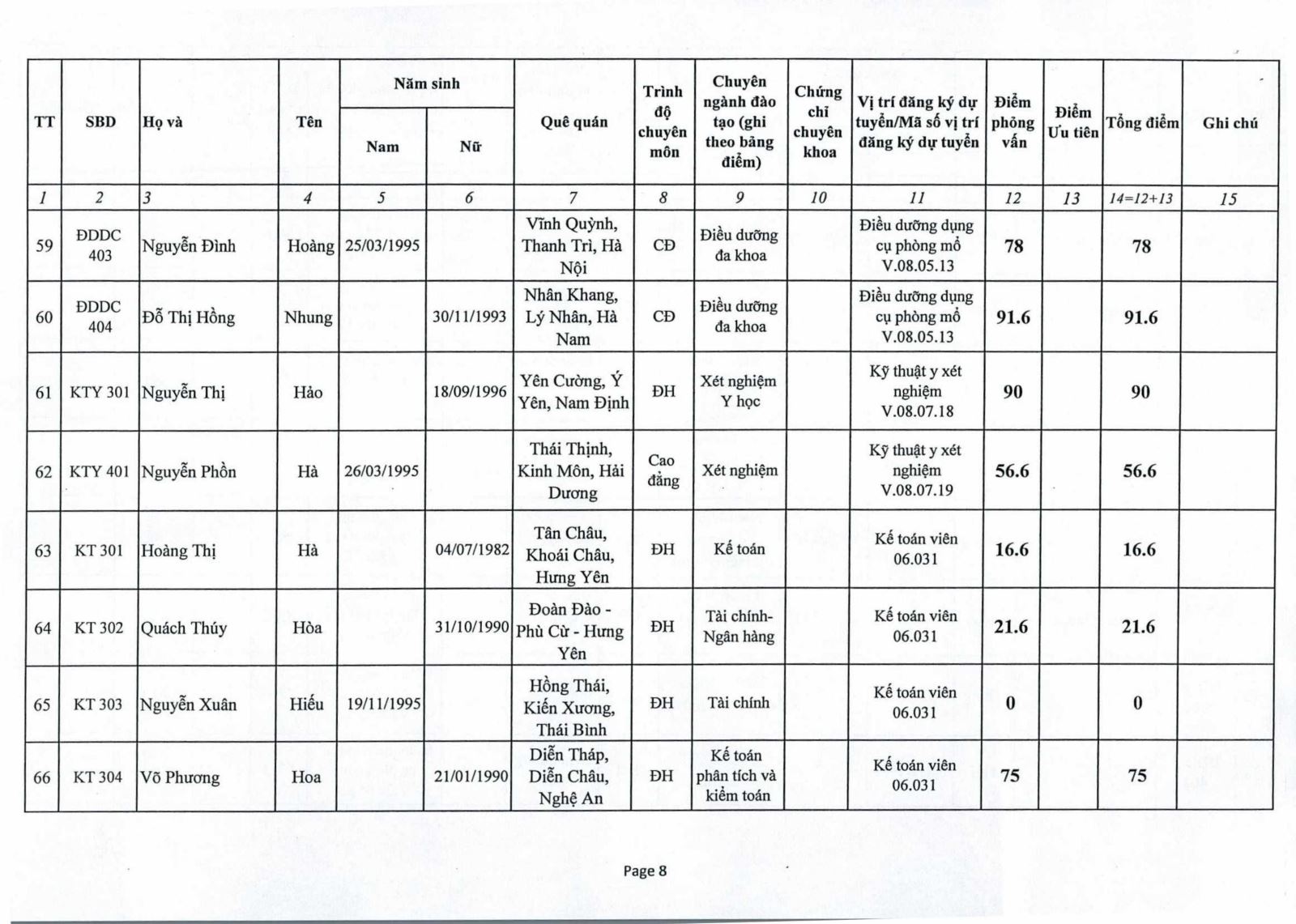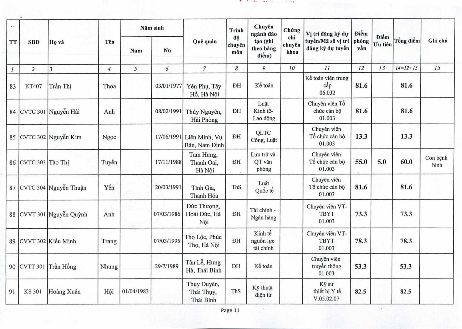 Thông báo : Kết quả trúng tuyển Nhân viên tiếp đón thuộc Phòng Công Tác Xã Hội