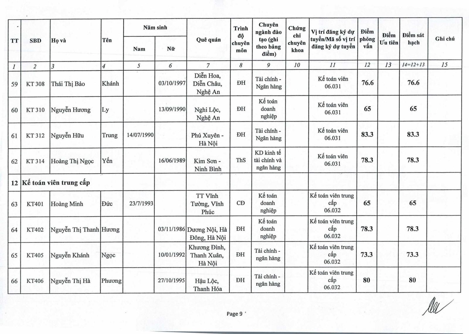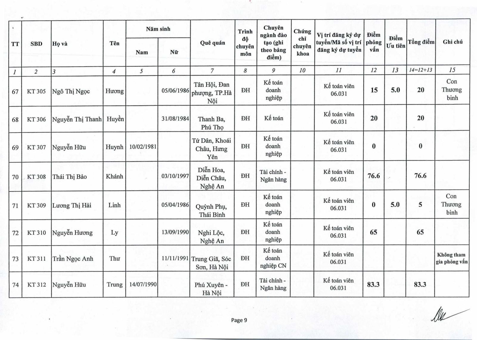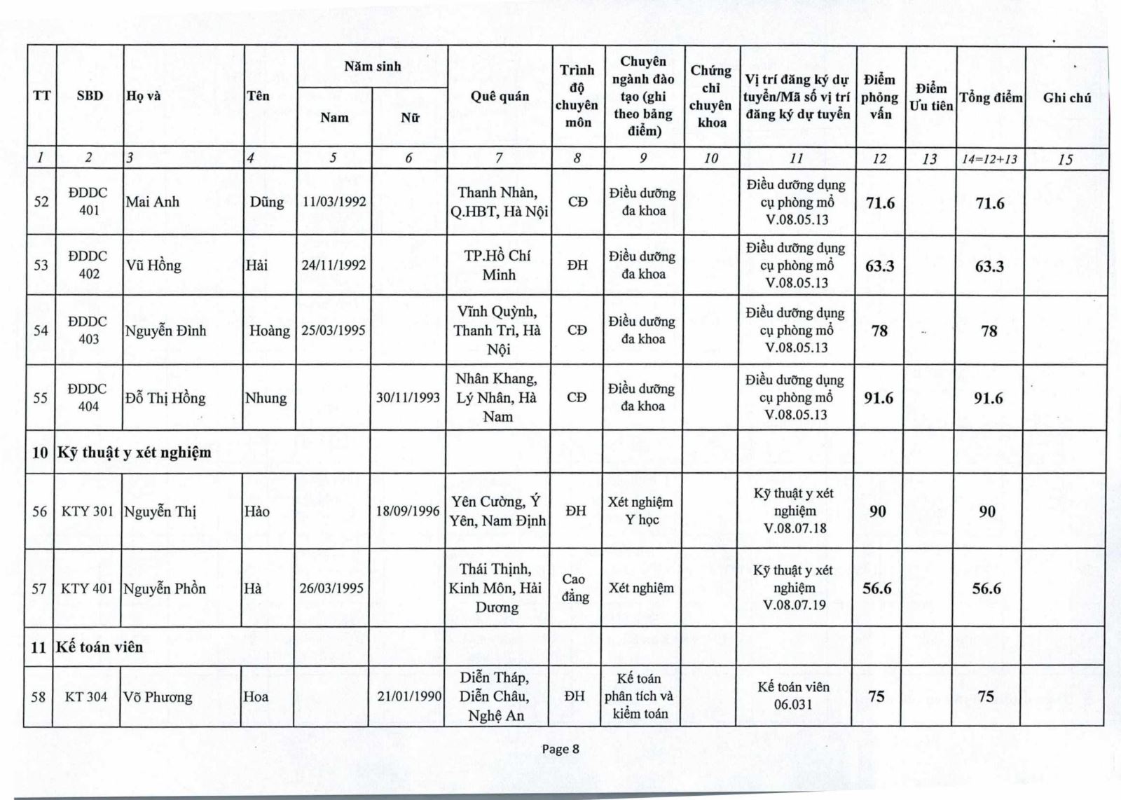 Thông báo : Kết quả trúng tuyển Nhân viên tiếp đón thuộc Phòng Công Tác Xã Hội