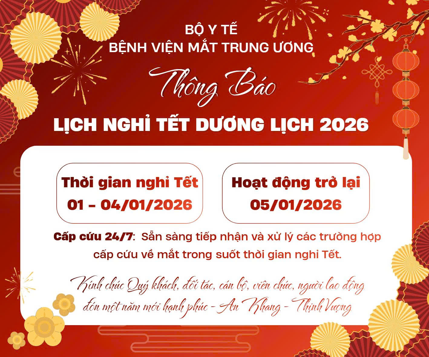Bệnh viện Mắt Trung ương xin thông báo lịch nghỉ Tết dương lịch 2026.